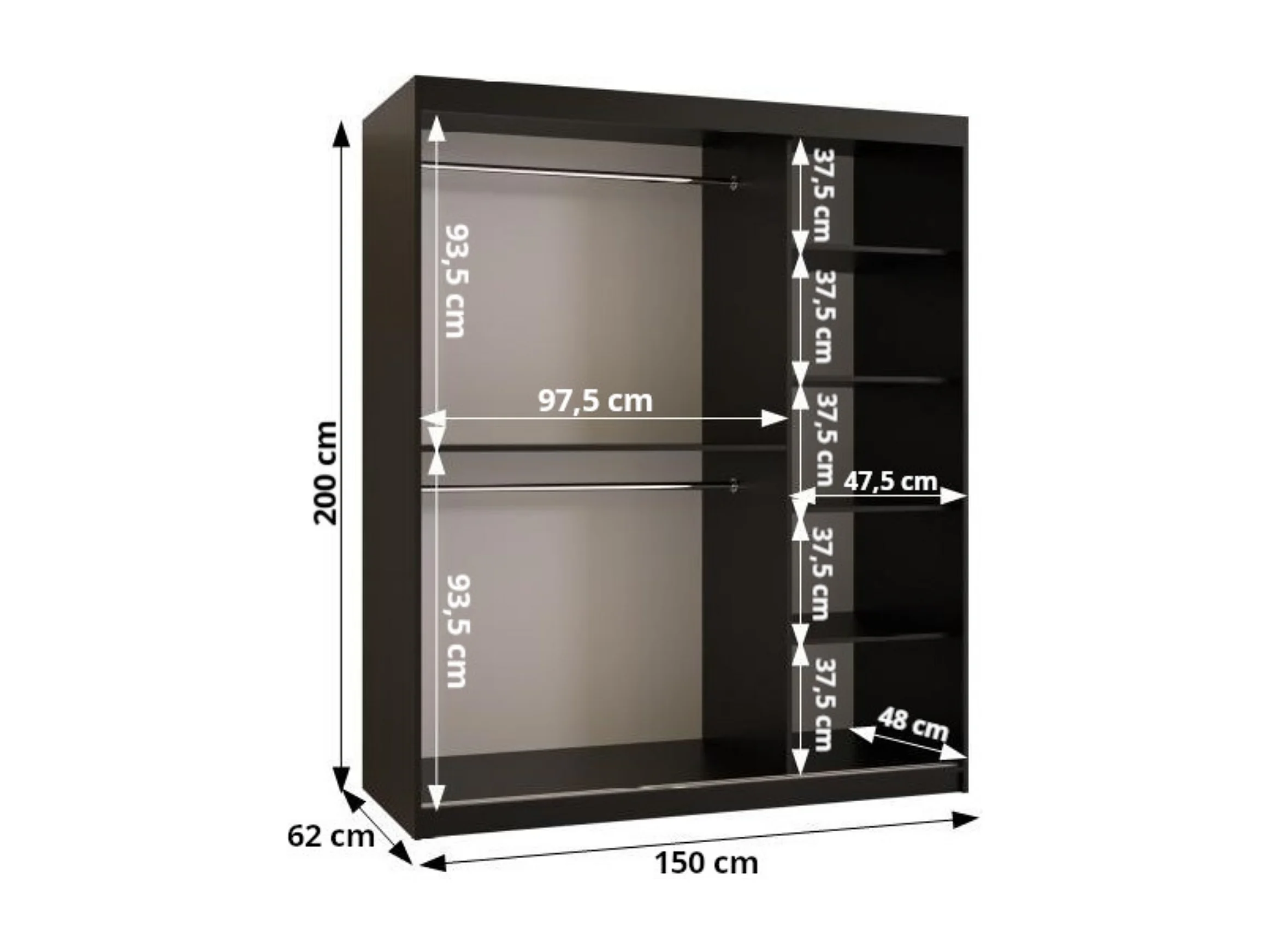 Armadio con porte scorrevoli Rubino T1 200/150/62 2 porta (Cashmere)
