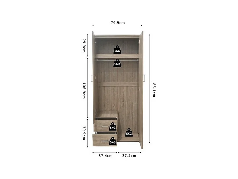 Armadio 2 porte REY colore rovere sonoma - 80 x 180 x 50 cm