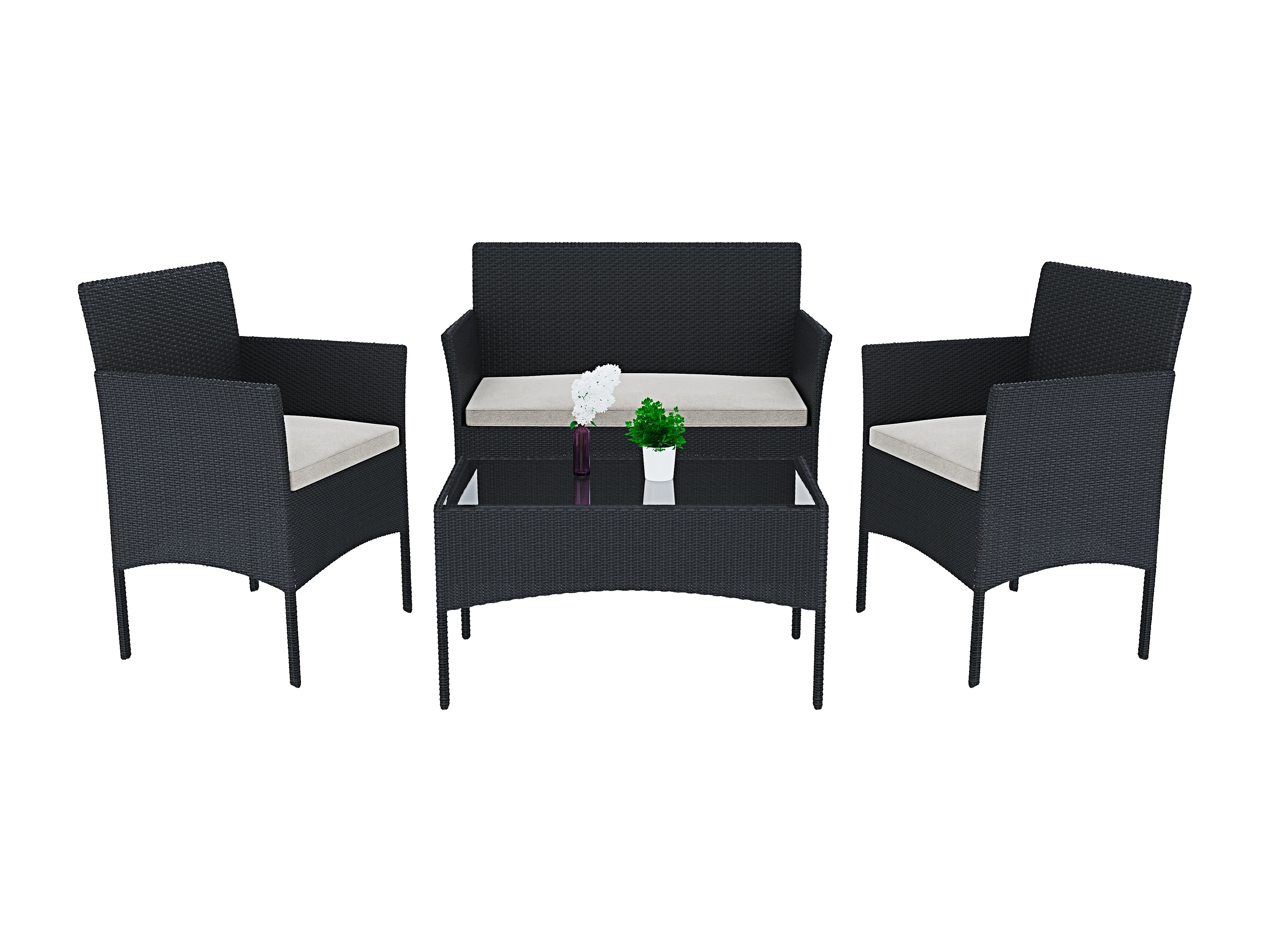 Set Mobili da Giardino in Rattan – 4 Pezzi – Nero