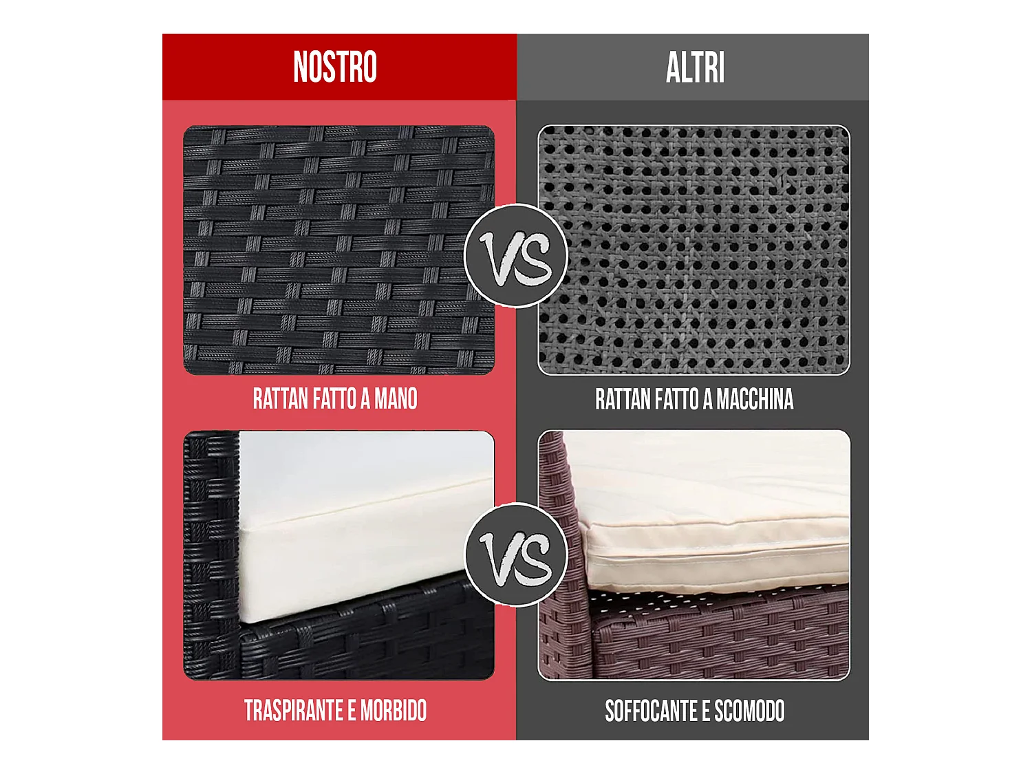 Set Di Mobili da Giardino Salotto Salottino in Rattan 4 Posti con Tavolino Ripiano In Vetro 2 Poltrone e Divano 2 Posti Giardino Esterno Piscina Nero