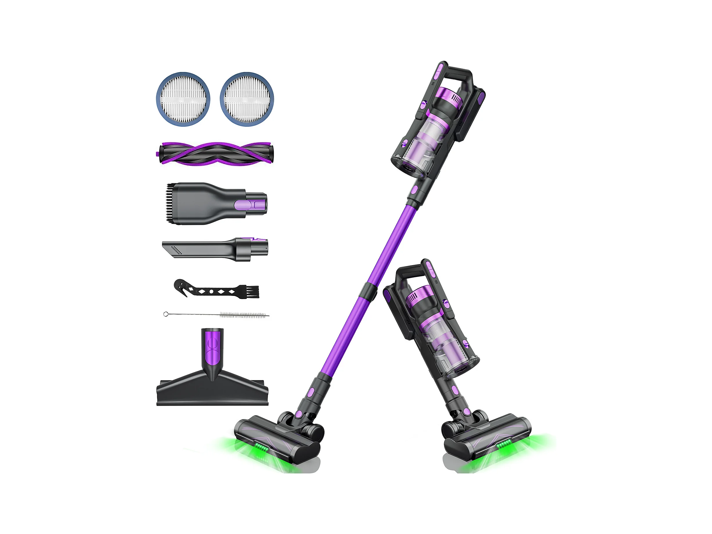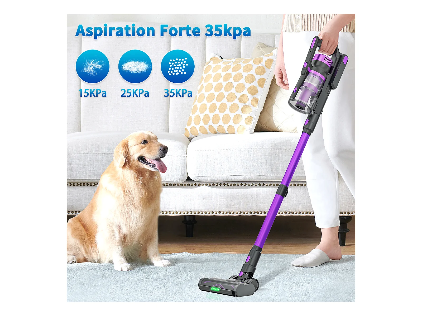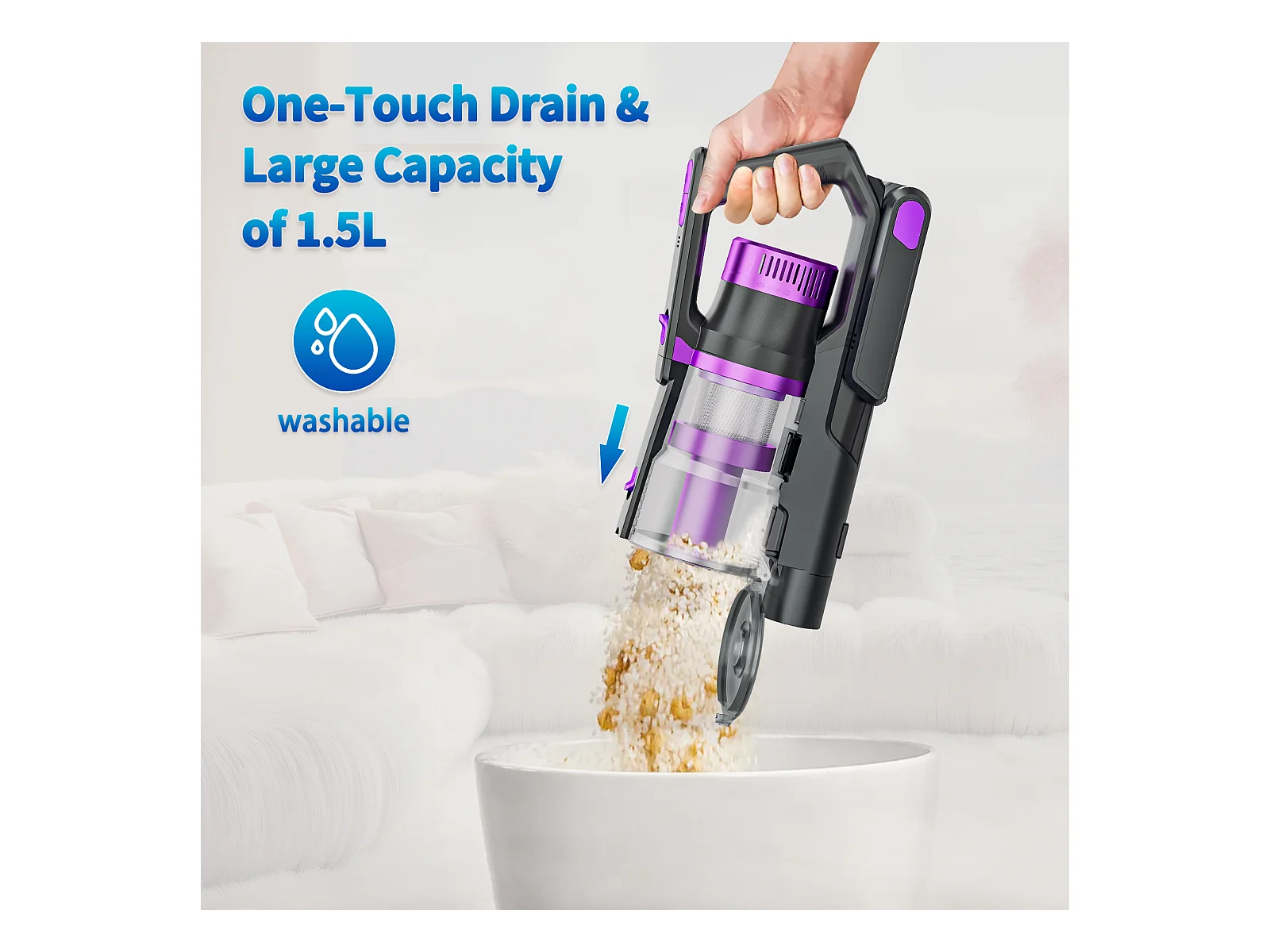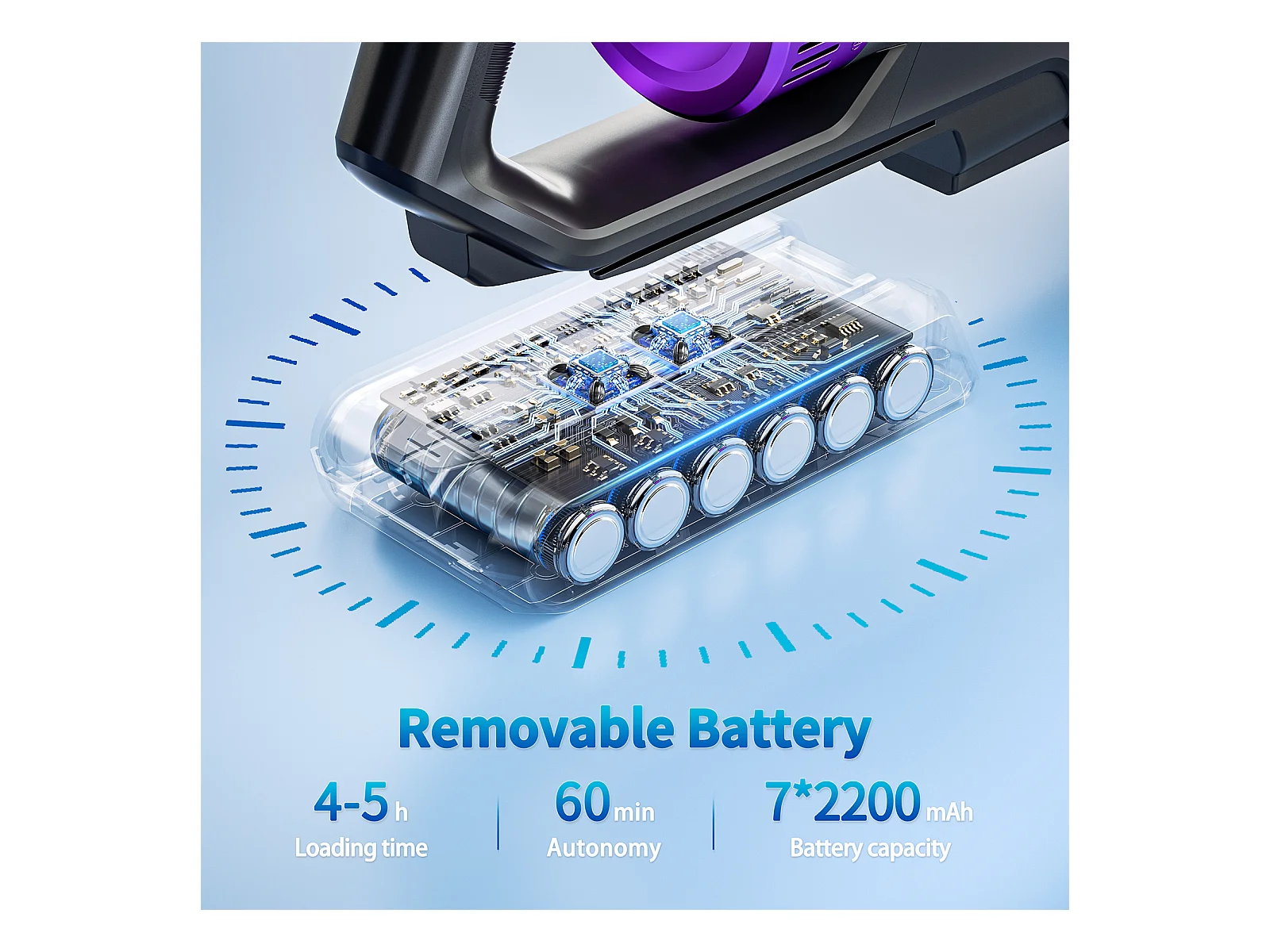 Aspirapolvere Senza Fili 35Kpa/450W, Aspirapolvere Senza Fili, Autonomia 60 Minuti, 1,5 Litri, Batteria Removibile, per Pavimenti e Moquette