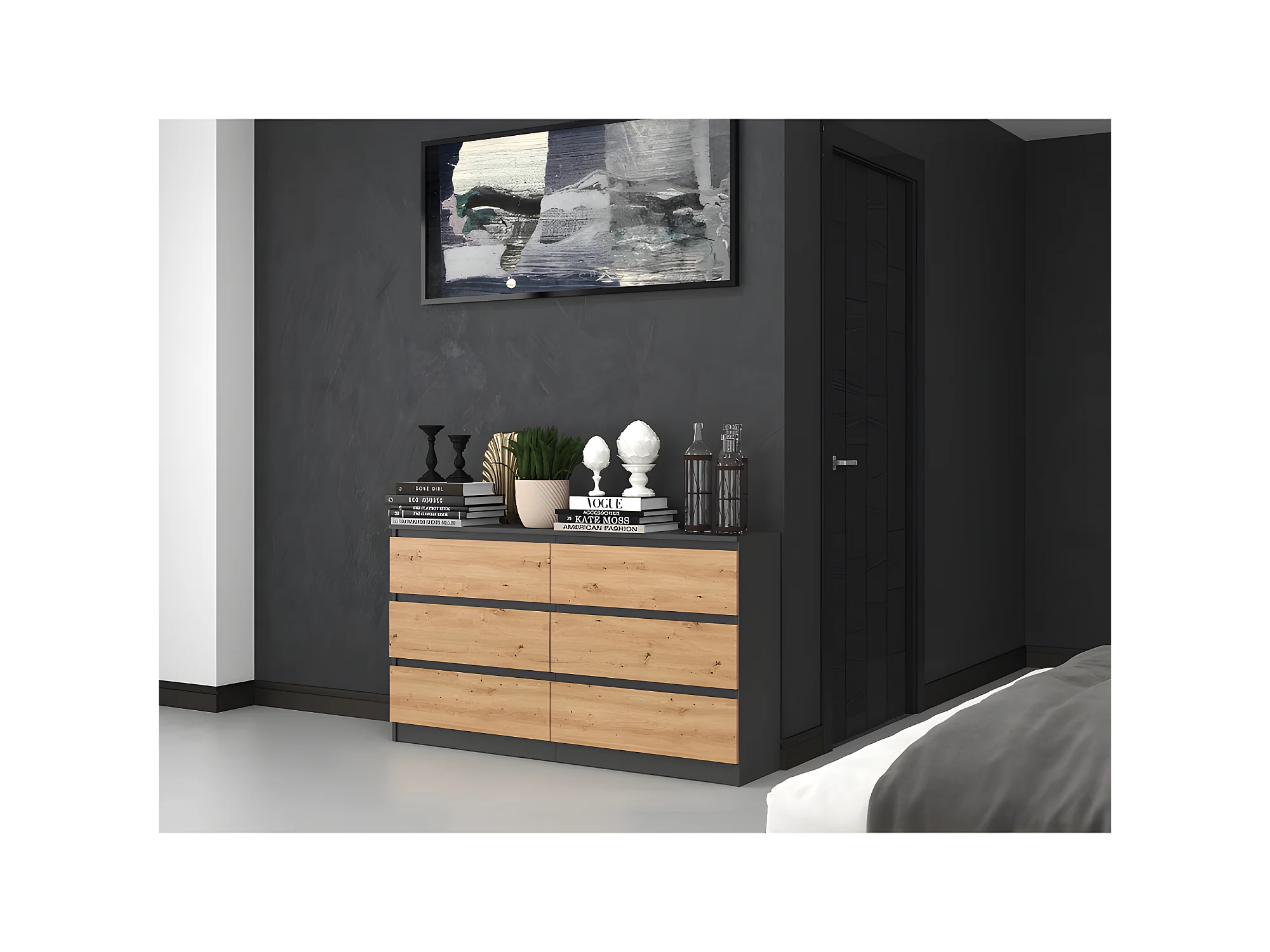 ASTER - Grande cassettiera camera da letto soggiorno ufficio - 6 cassetti - 138x40x75cm - 6 cassetti - Stile scandinavo