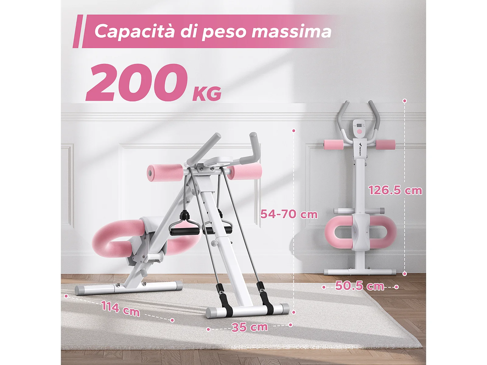 Attrezzo fitness MERACH, tipo equitazione, resistenza regolabile, schermo LCD, carico 160 kg, pieghevole, per addome/gambe/schiena, bianco