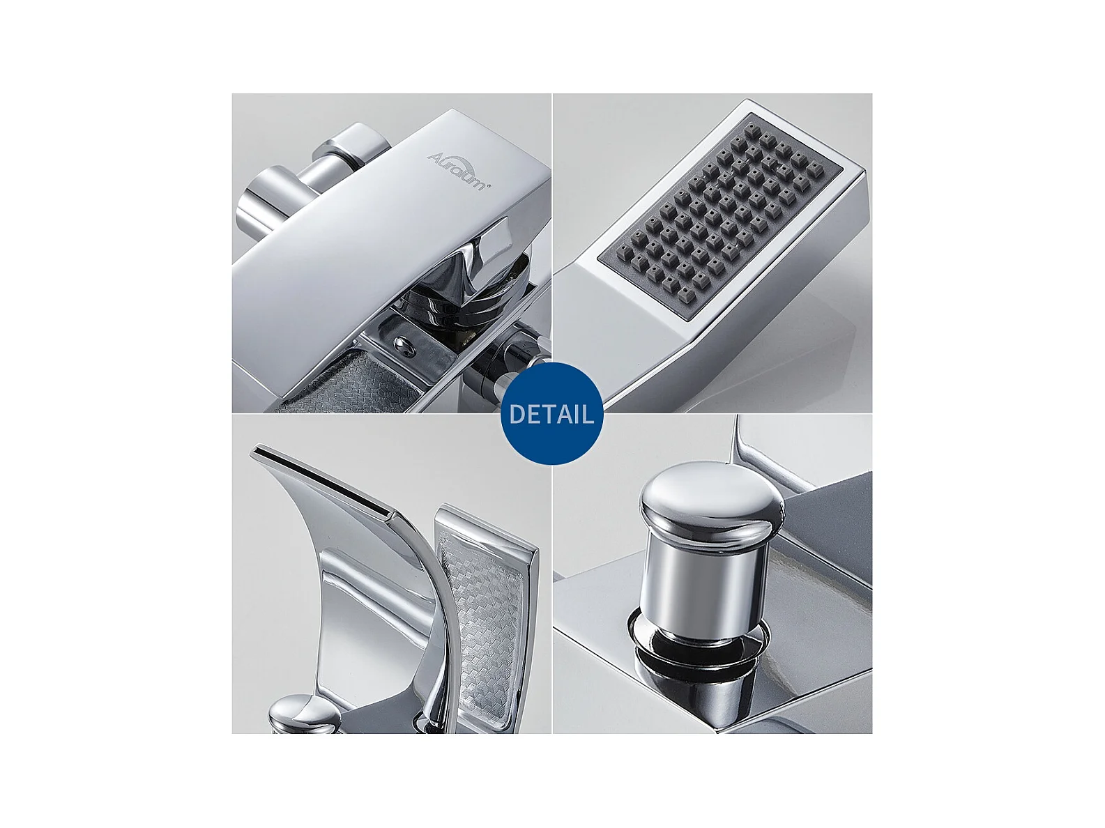 Auralum max Miscelatore di Vasca Con Cascade con Soffione doccia Risparmio idrico,Ottone,Cromo+Set Bagno Accessorio 6 Pezzi,Acciaio Inox,Spazzolato