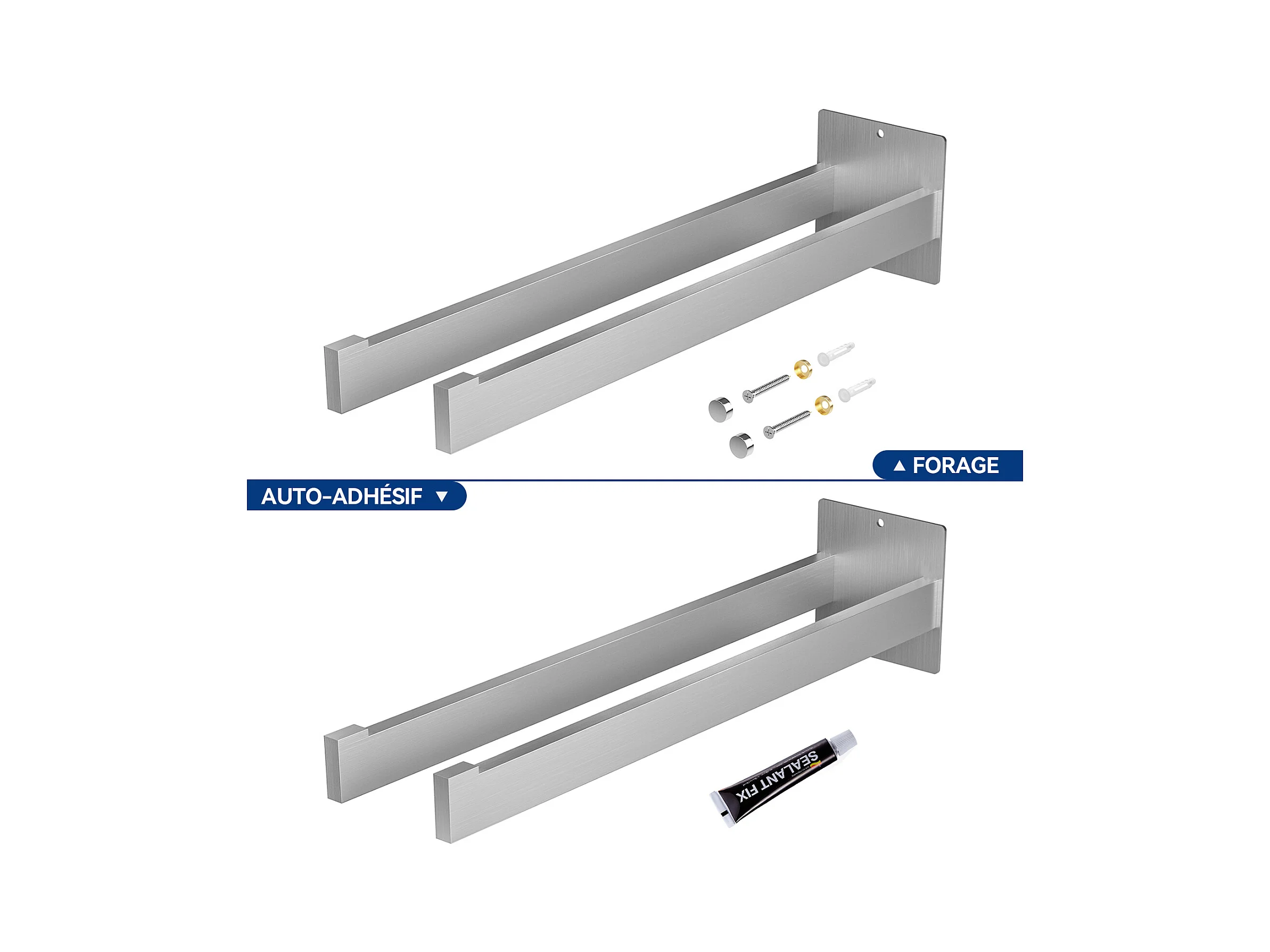 Set di 2x Portasciugamani in Acciaio Inossidabile Argento - Montaggio Senza Forare - Design Moderno - Facile da Installare