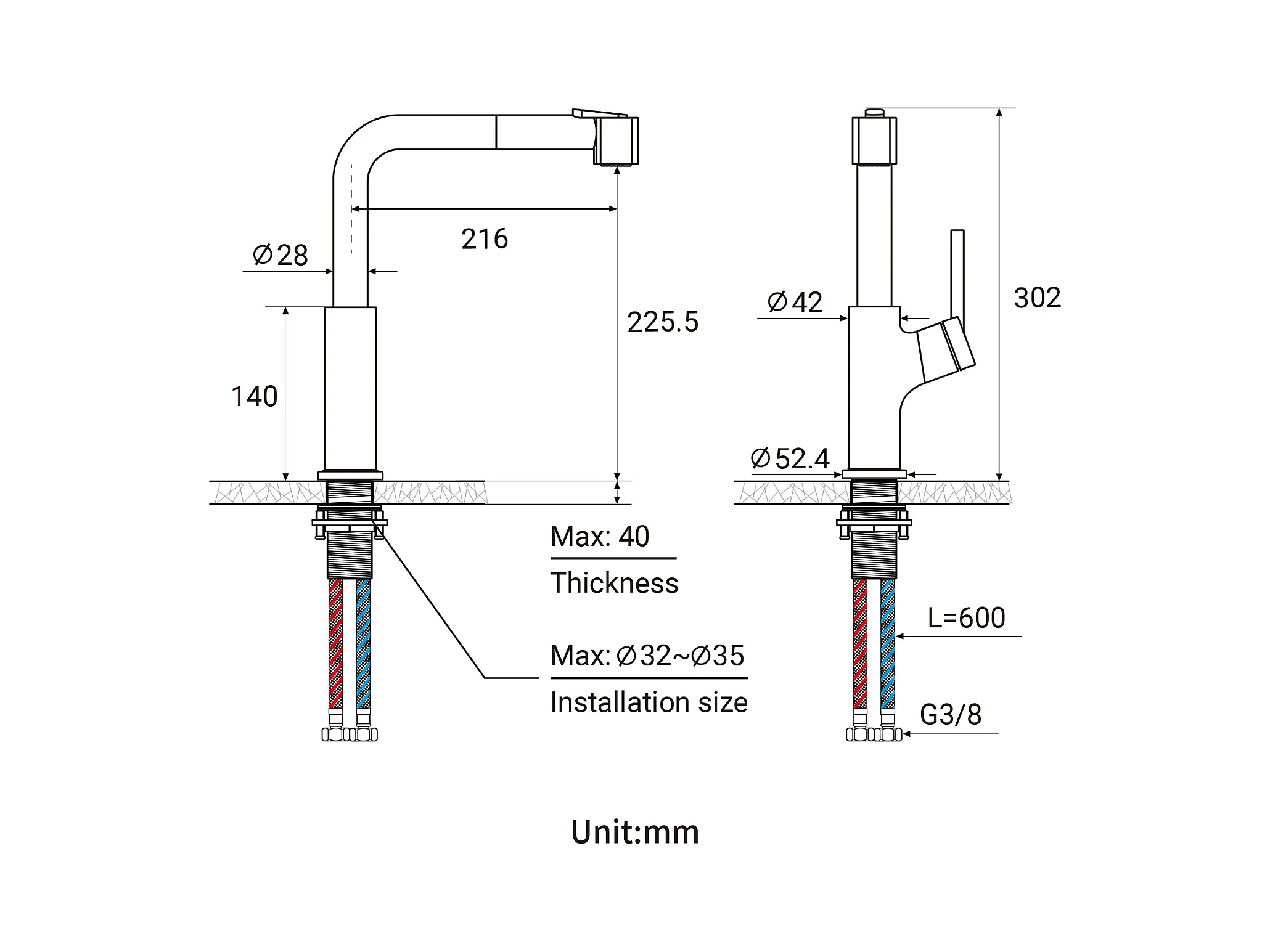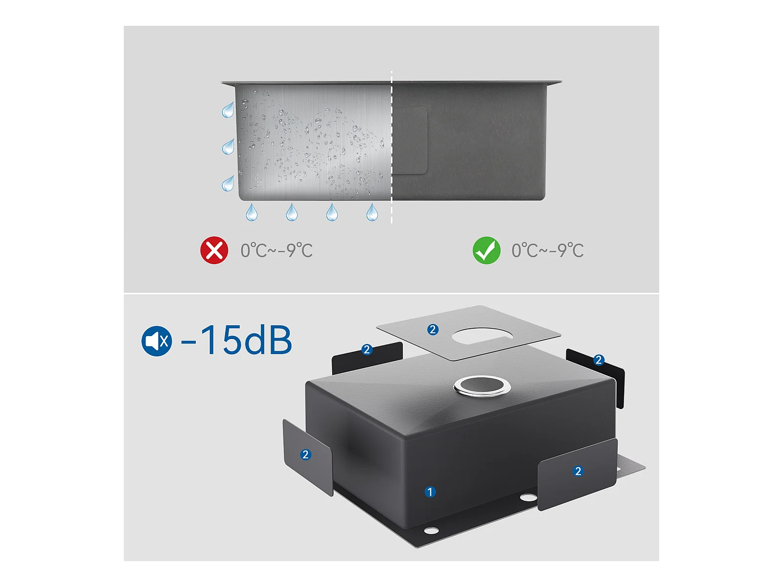 Auralum max Lavello Cucina da Incasso,1 Vassoio,60*49*20CM,Acciaio inossidabile 304,Nero+Rubinetto Cucina con Doccia Estraibile 2 Getti,Grigio