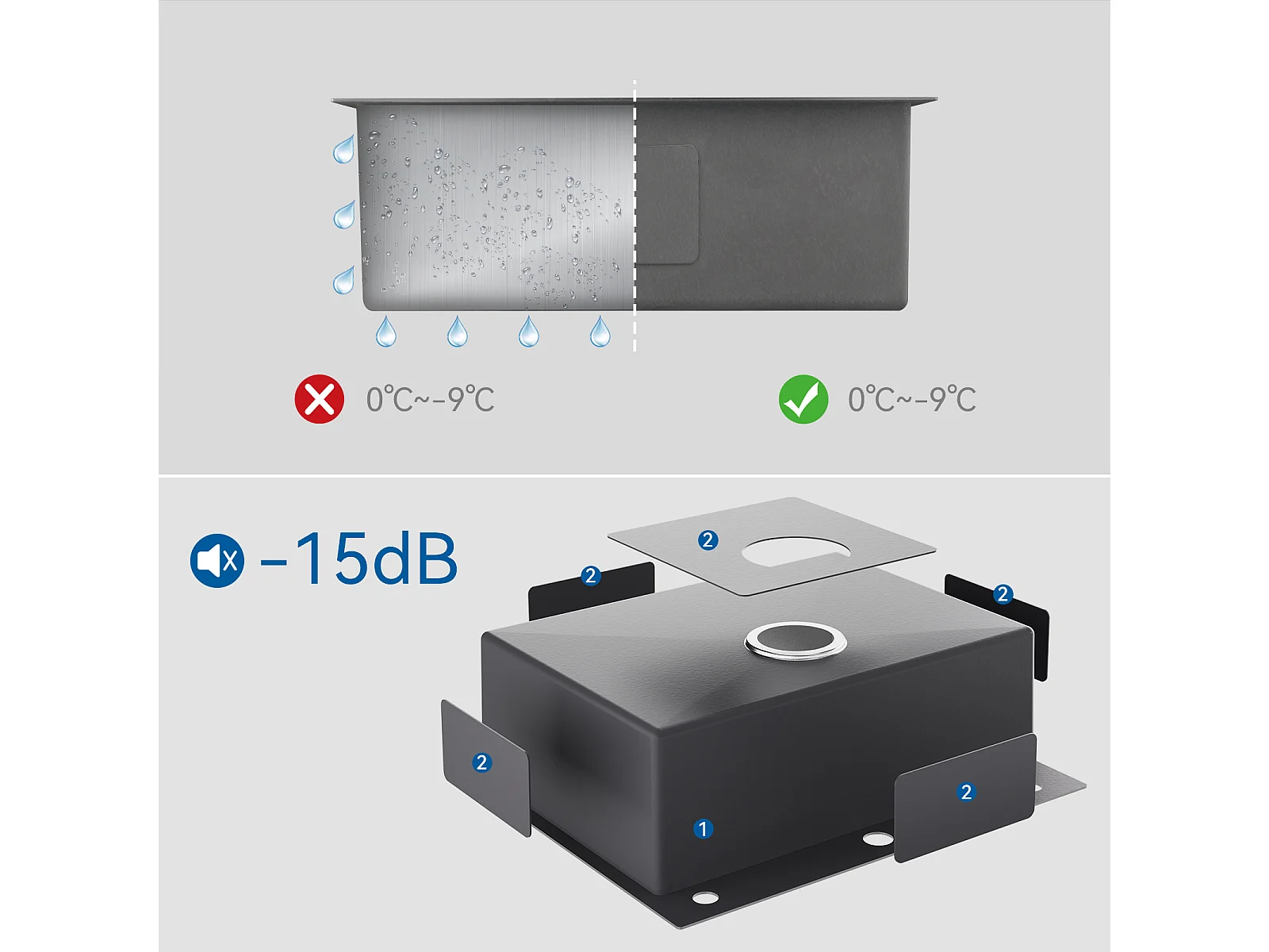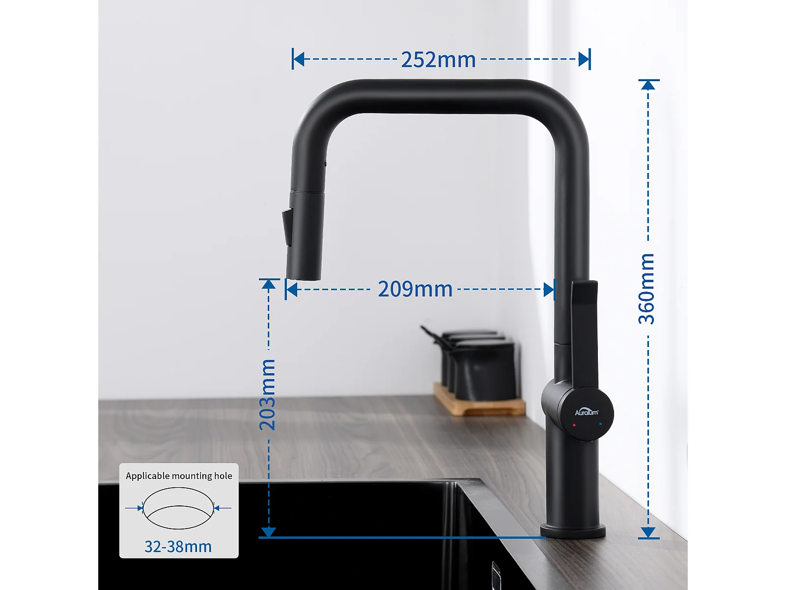 Auralum max Lavello Cucina da incasso,1 Vaschetta,60*49*20CM,Acciaio inossidabile 304,Nero+RoBinet Cucina,Orientabile a 360°,Acua calda/fredda,Nero