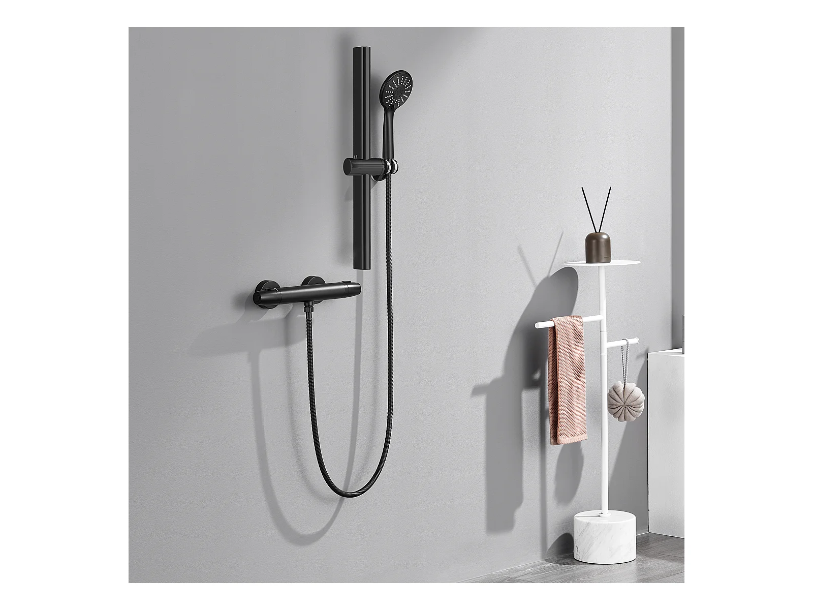 Auralum Max Miscelatore doccia termostatico a montaggio a parete ANti-bruciatura, rubinetto dell'acqua calda/fredda,temperatura costante38°,nero