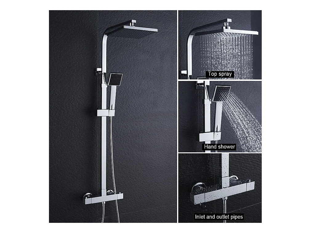 Colonna doccia termostatica,Set doccia per bagno regolabile in altezza, con soffione a pioggia/doccia a mano quadrata, cromato