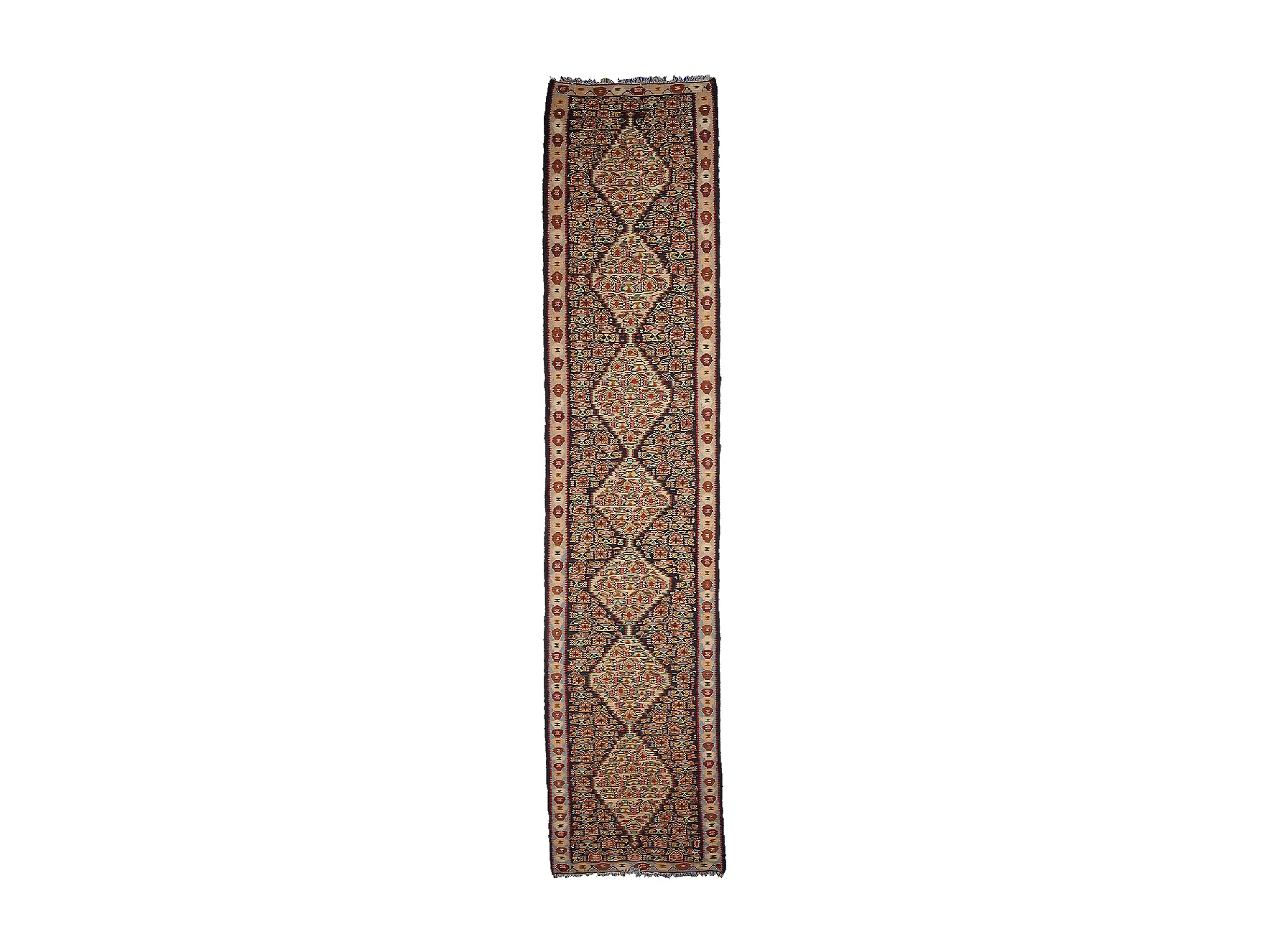 Autentico tappeto orientale 86x391 kilim fatto a mano in lana multicolore SENNEH