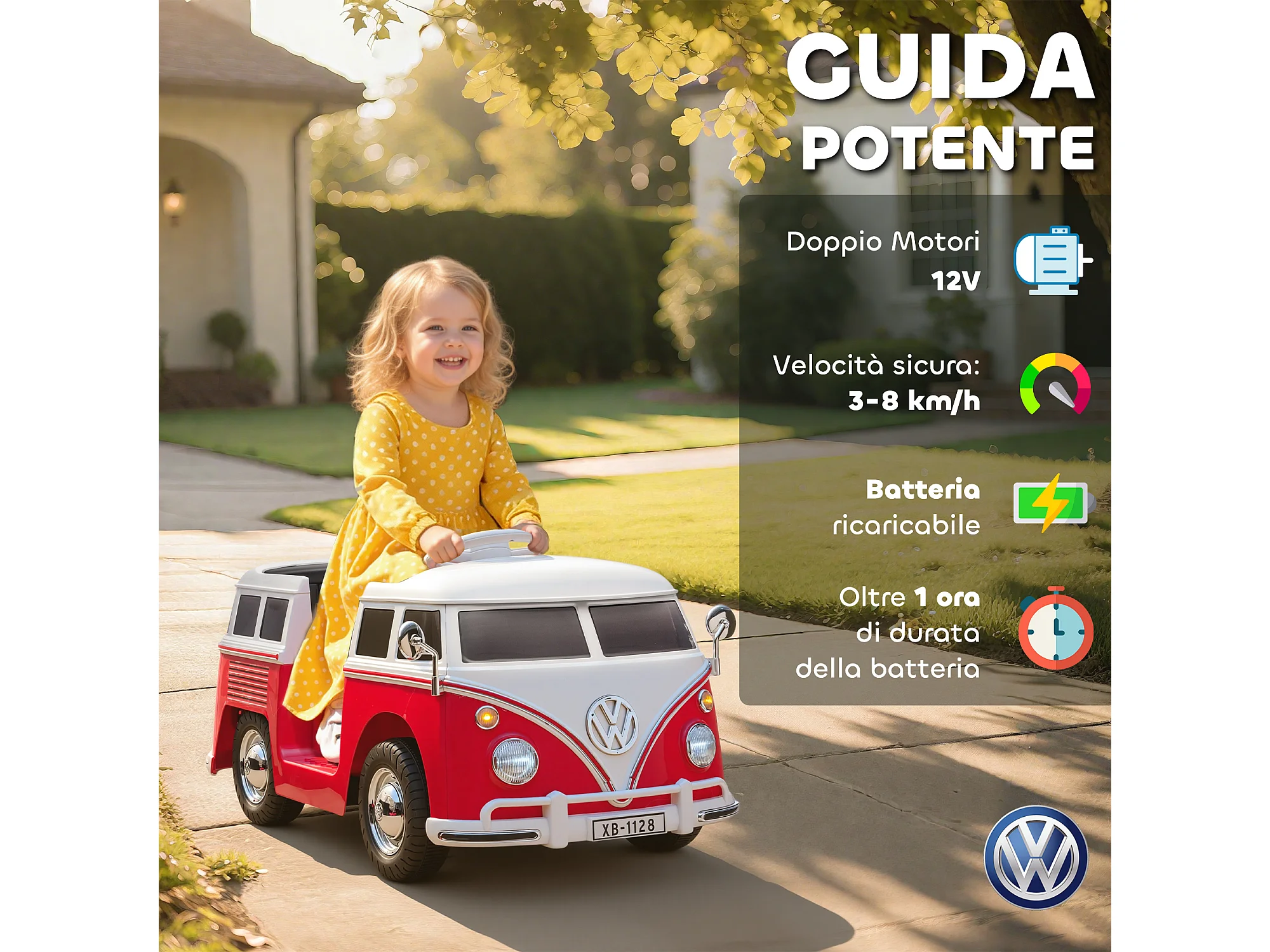 Auto elettrica per bambini volkswagen t1 89x49x41.5 cm rosso