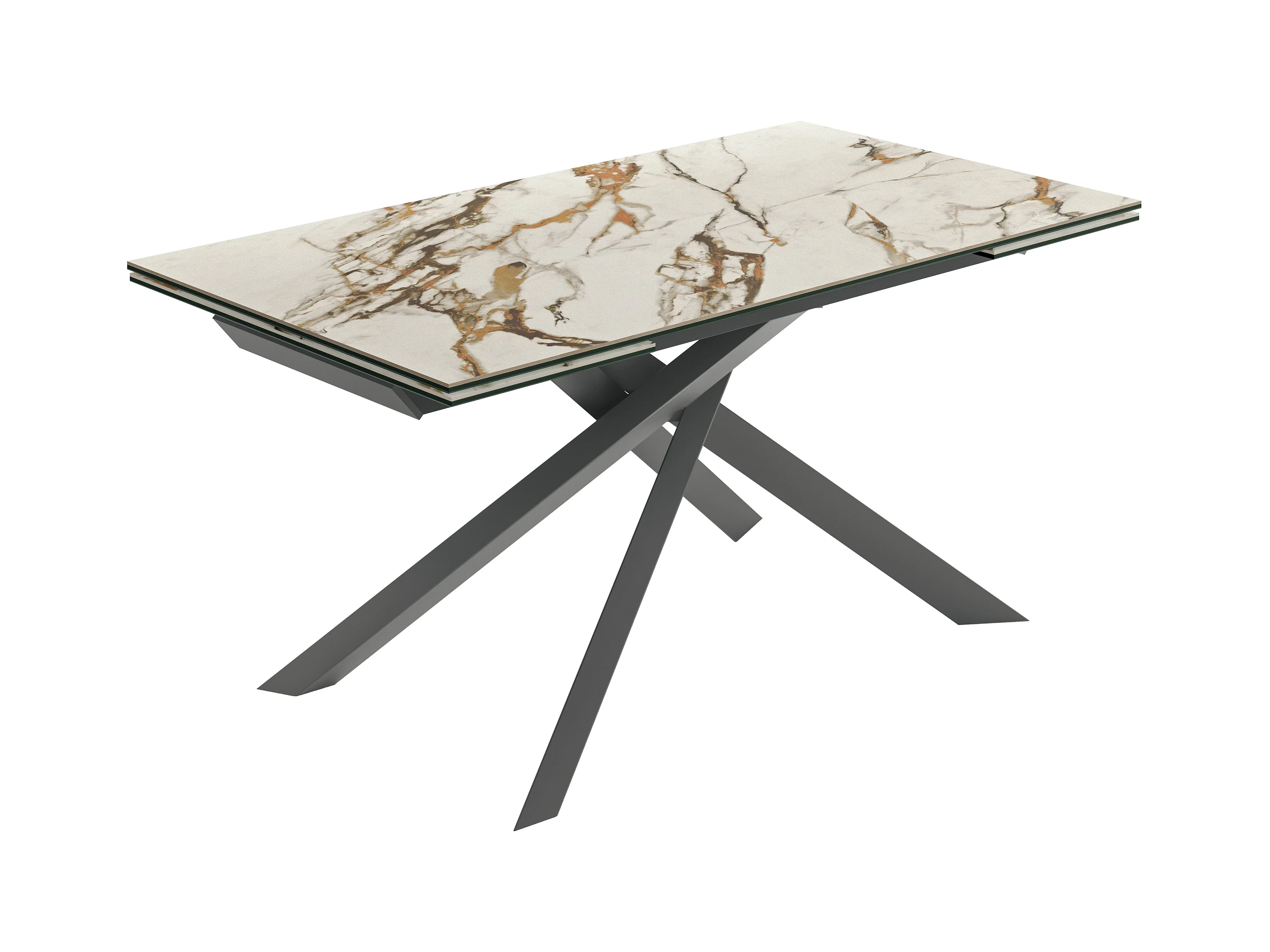 Axis, Tavolo allungabile con top in ceramica su vetro. Gambe in metallo verniciato. Allunghe interne. (90cm X 160-240cm H. 76cm)| Duzzle