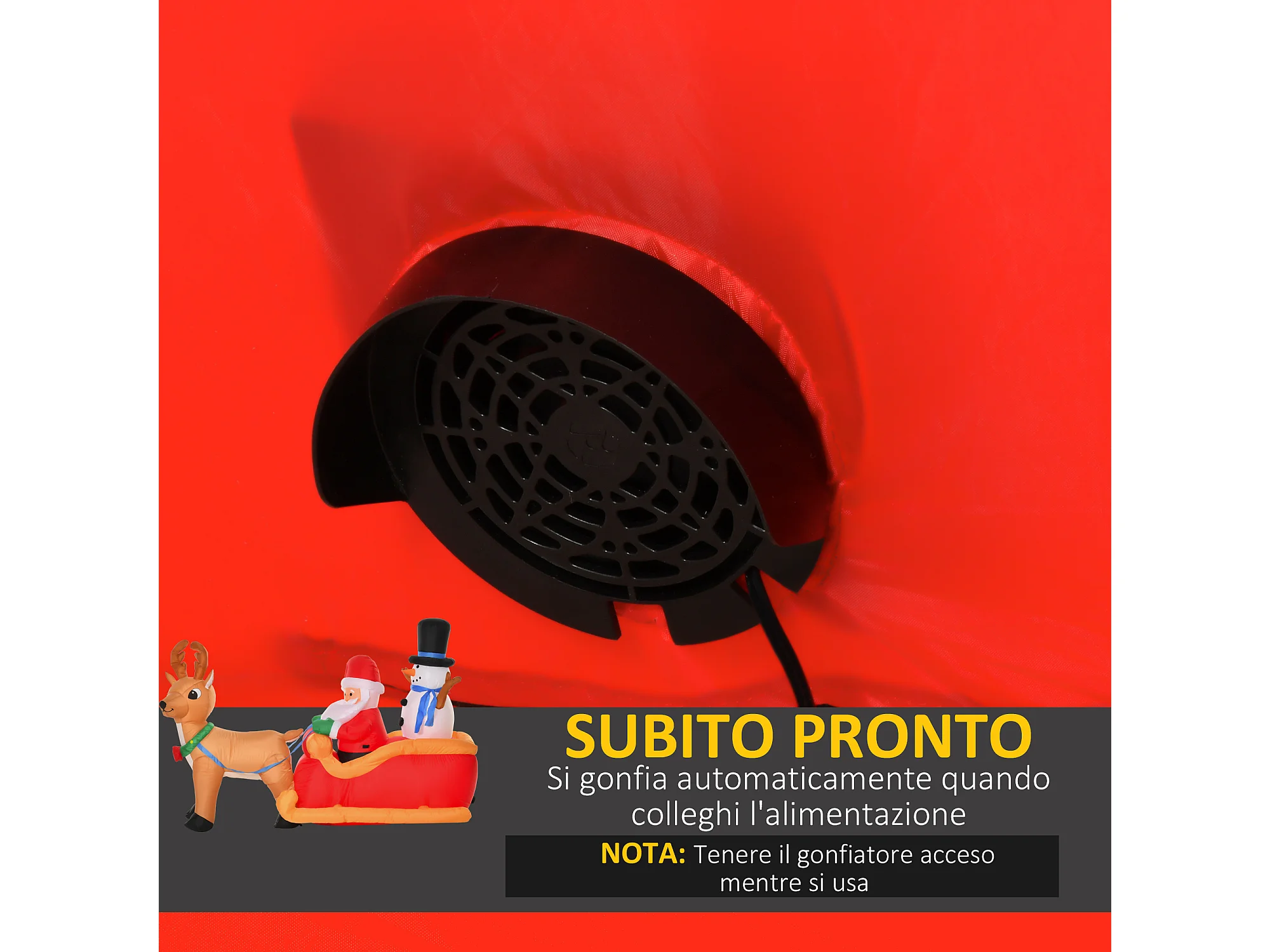 Babbo Natale gonfiabile da esterno con slitta e renne 6 luci 2.4 m