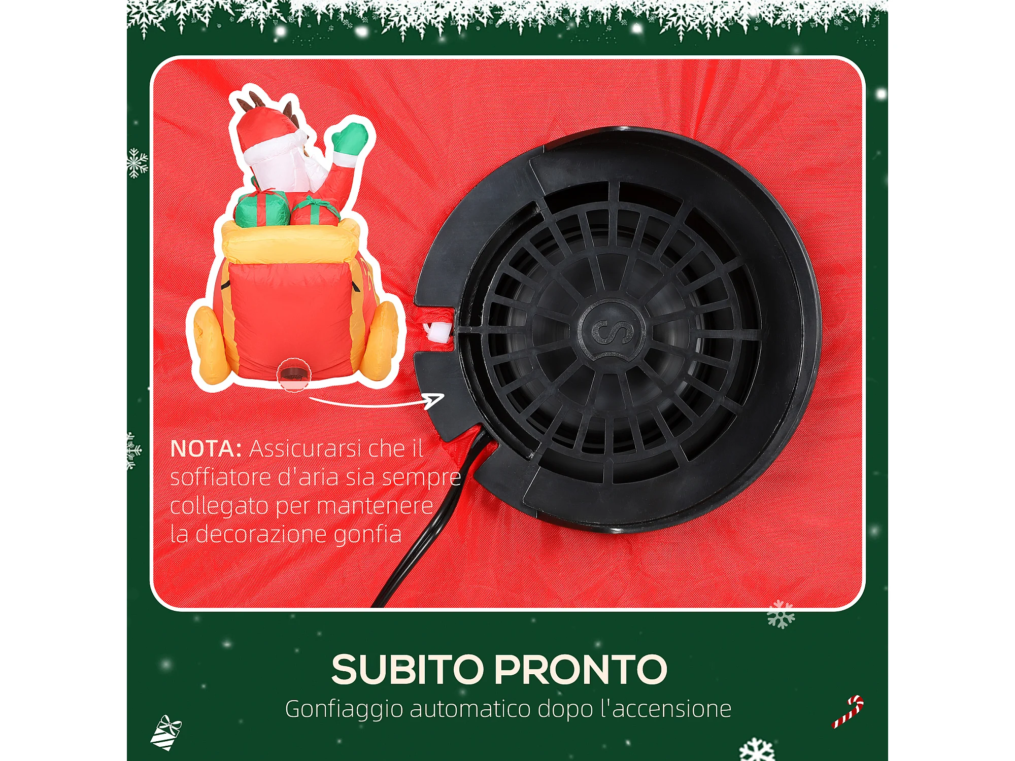 Babbo natale gonfiabile alto 248cm da esterno con luci led e accessori