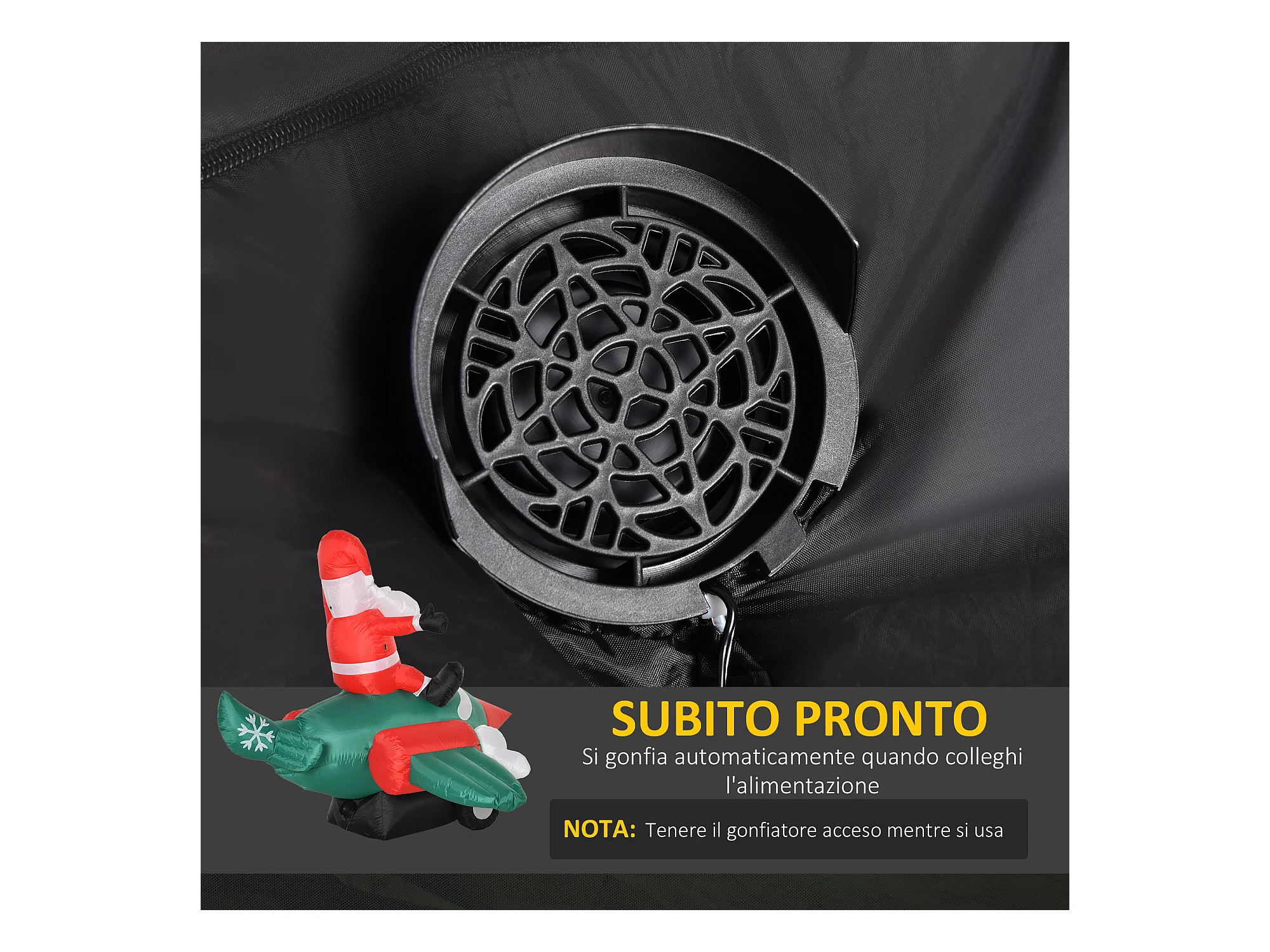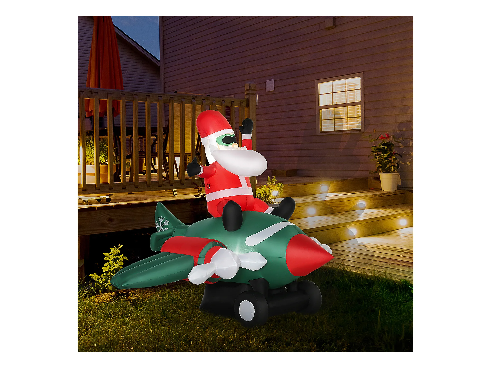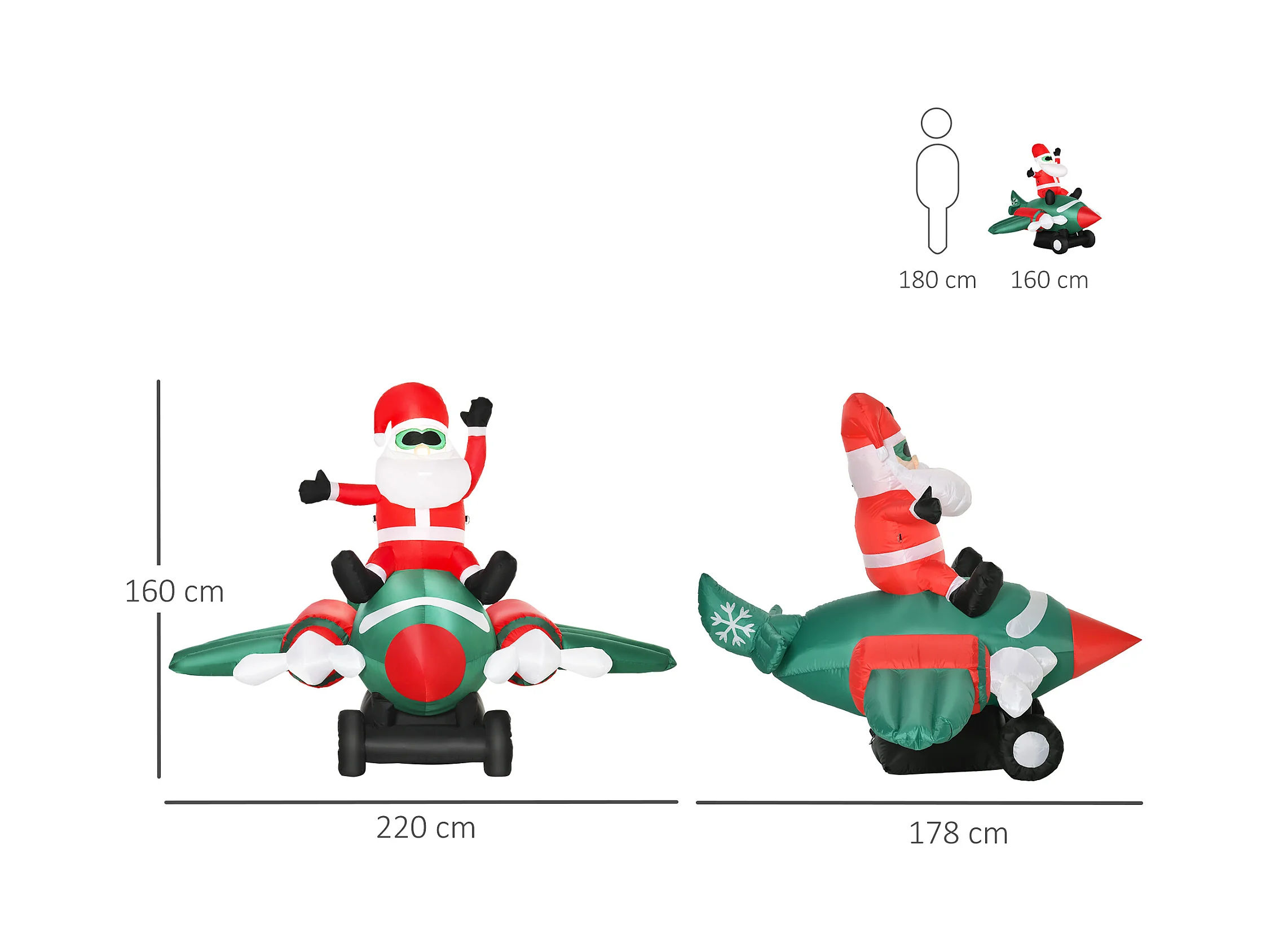 Babbo natale gonfiabile su aereo luci led decorazione esterno
