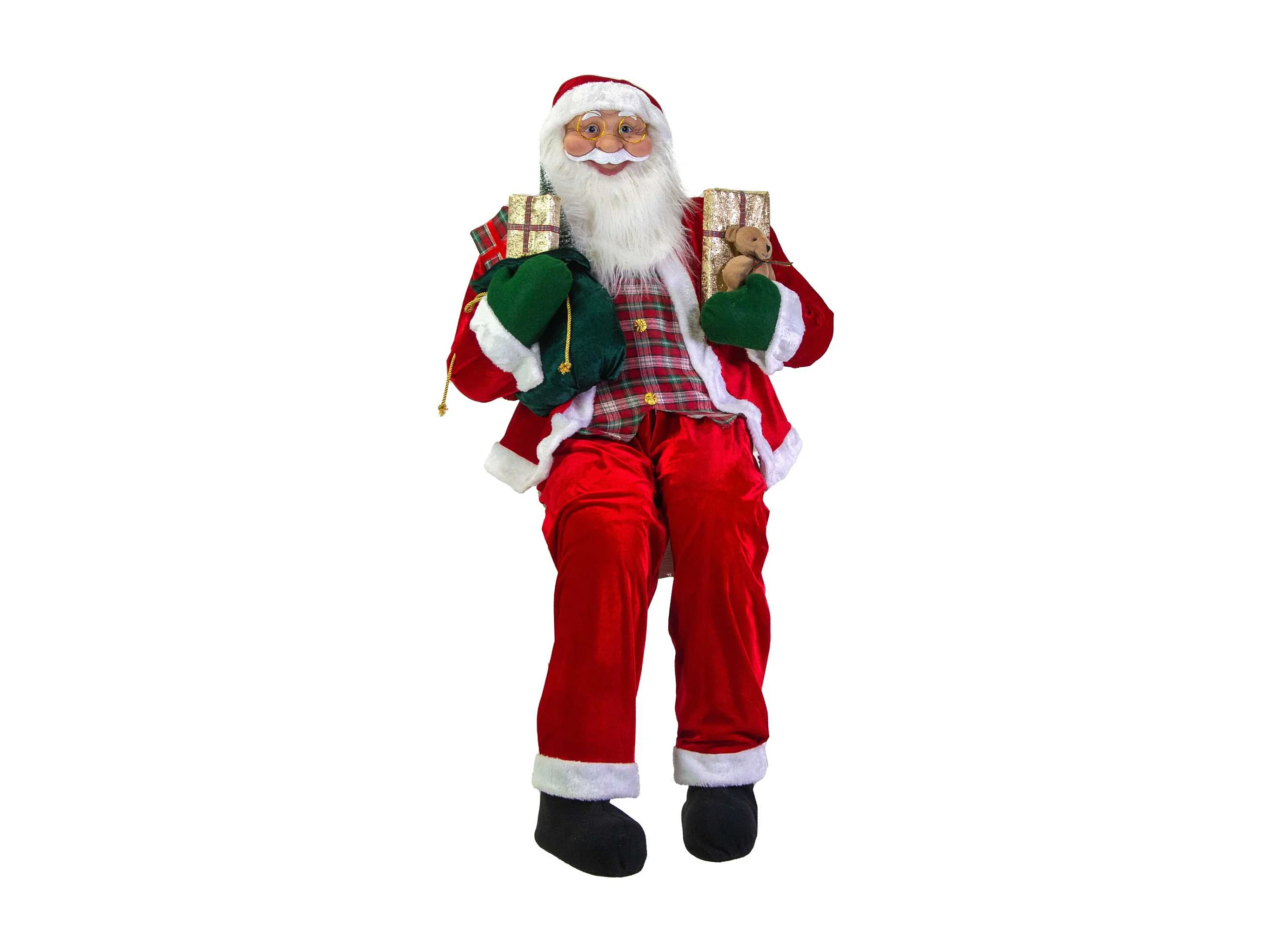 Babbo natale tessuto rosso con bastone seduto cm h150