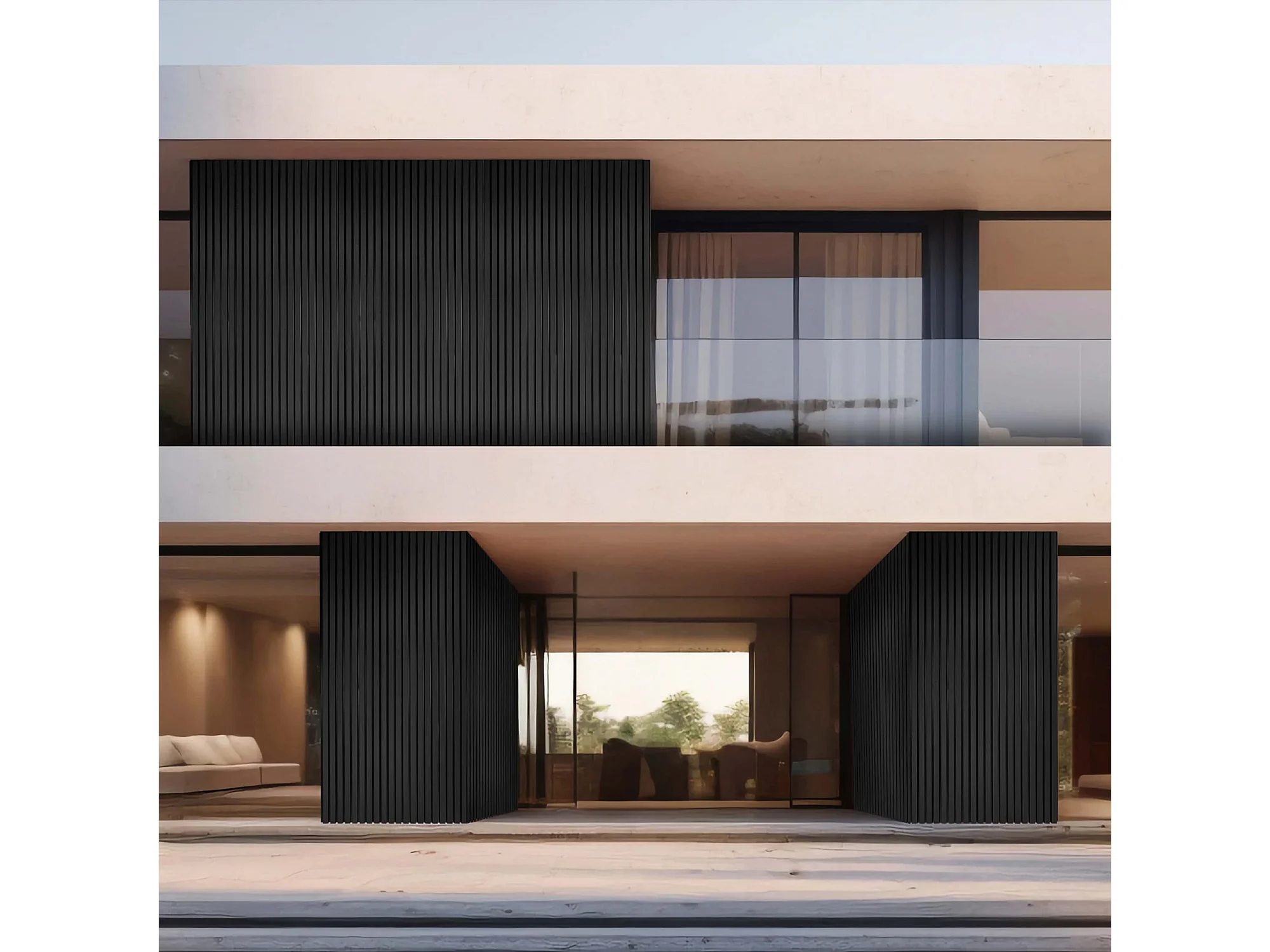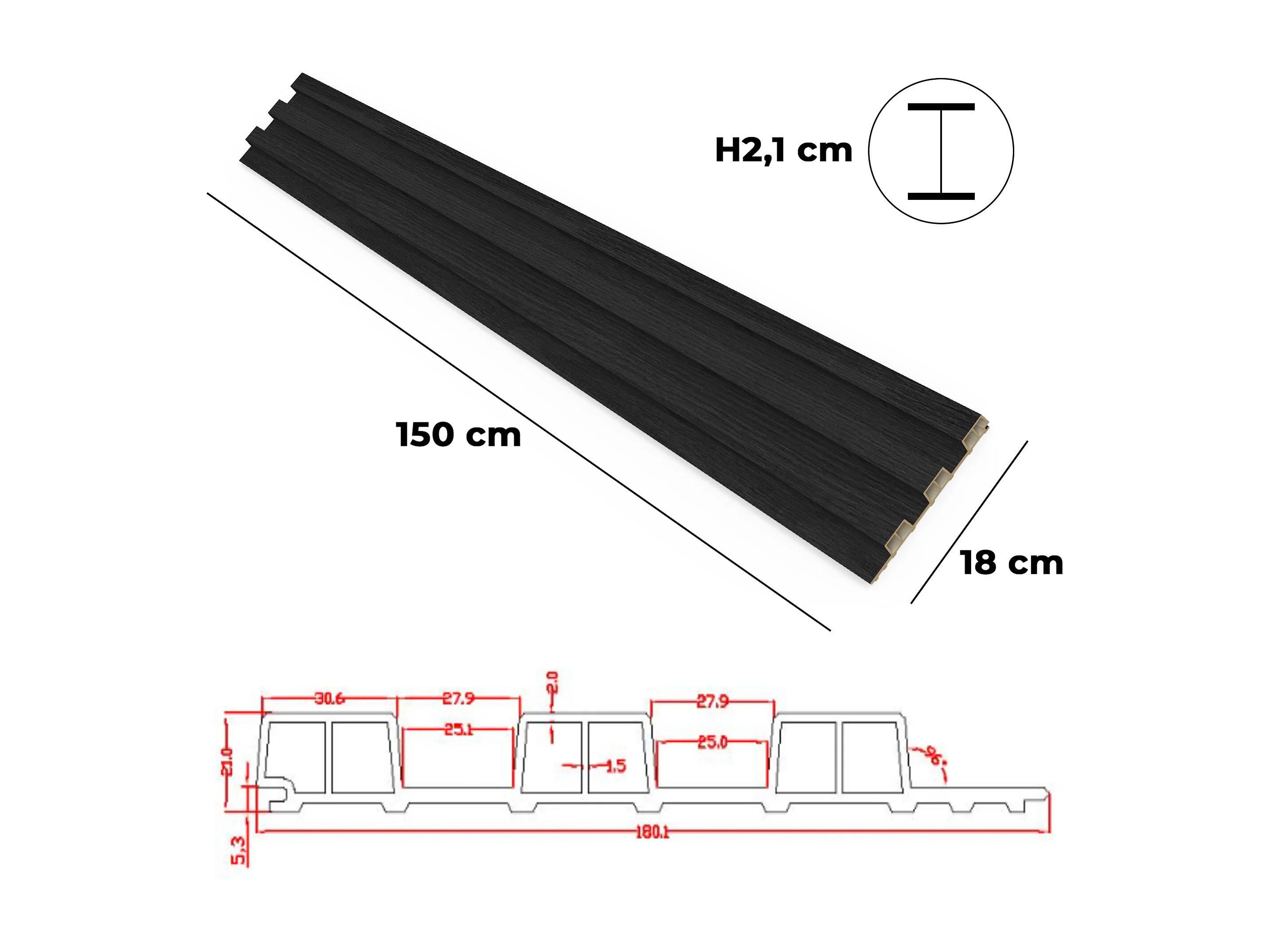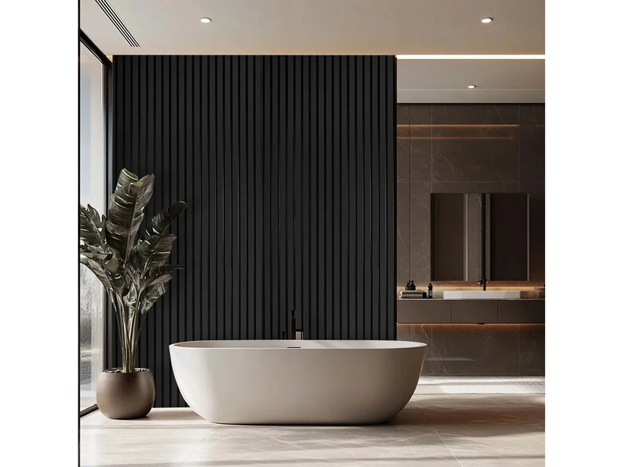 Bach - Set 8 Pannelli Fonoassorbenti Decorativi 150x18 cm per Interno ed Esterno in WPC Nero