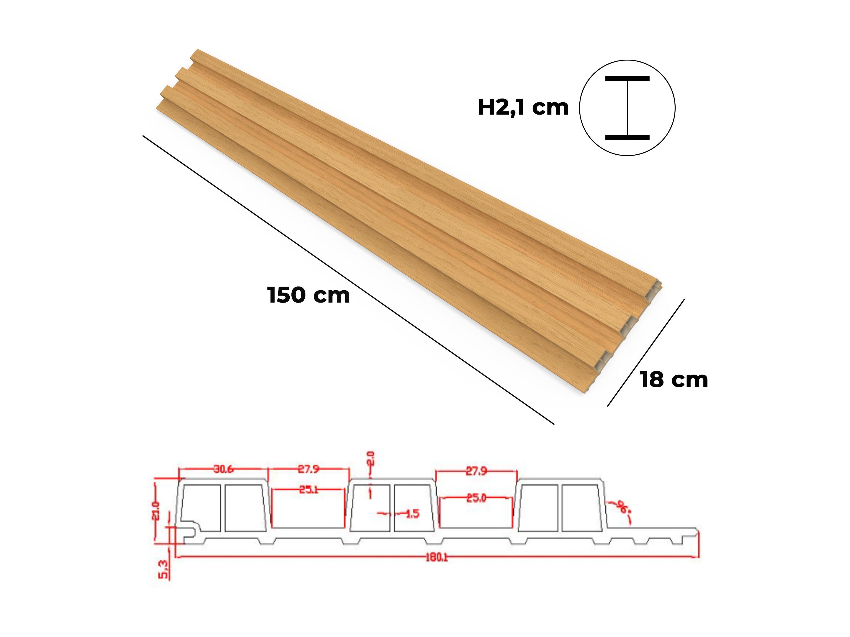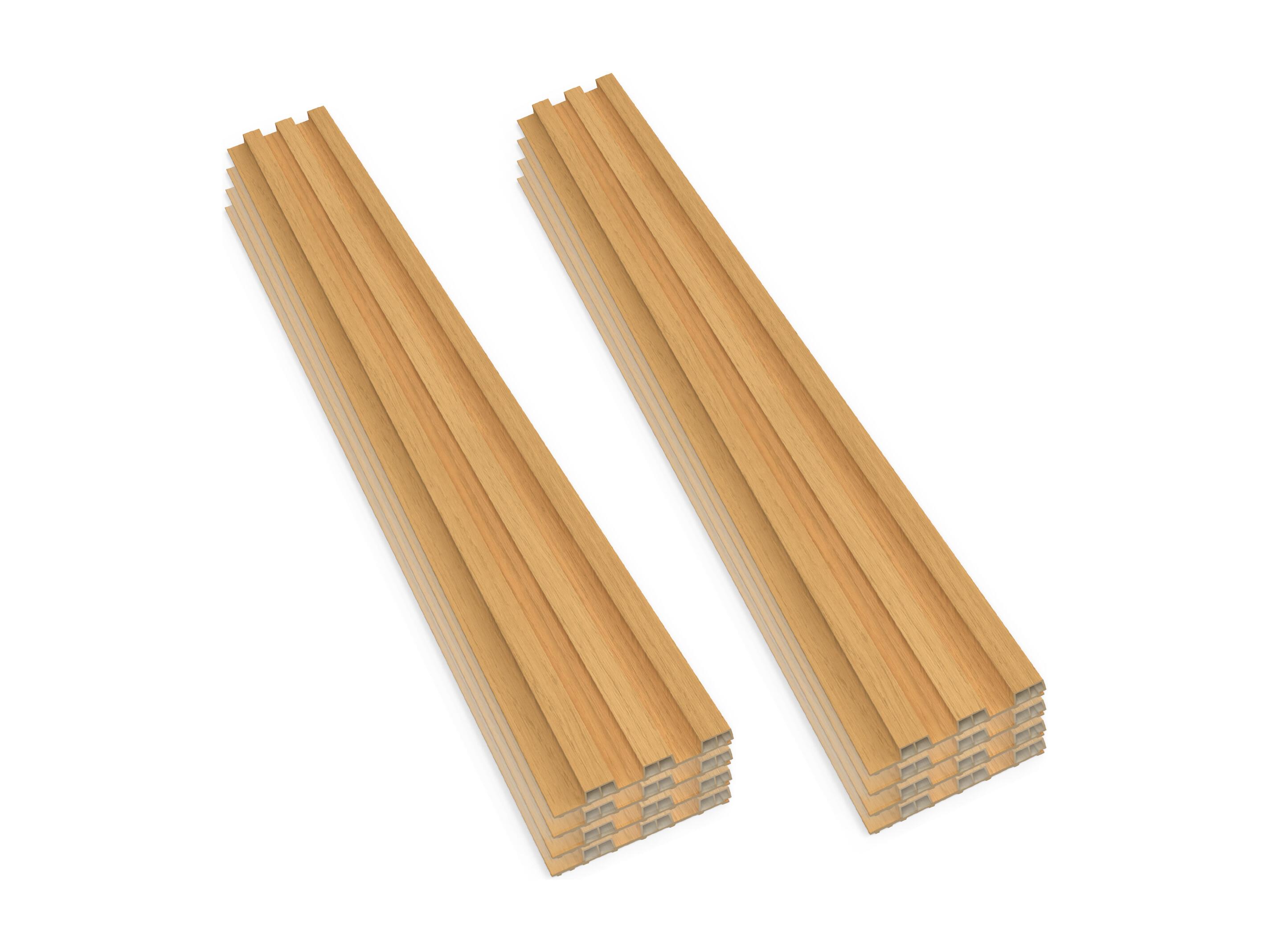 Bach - Set 8 Pannelli Fonoassorbenti Decorativi 150x18 cm per Interno ed Esterno in WPC Oak