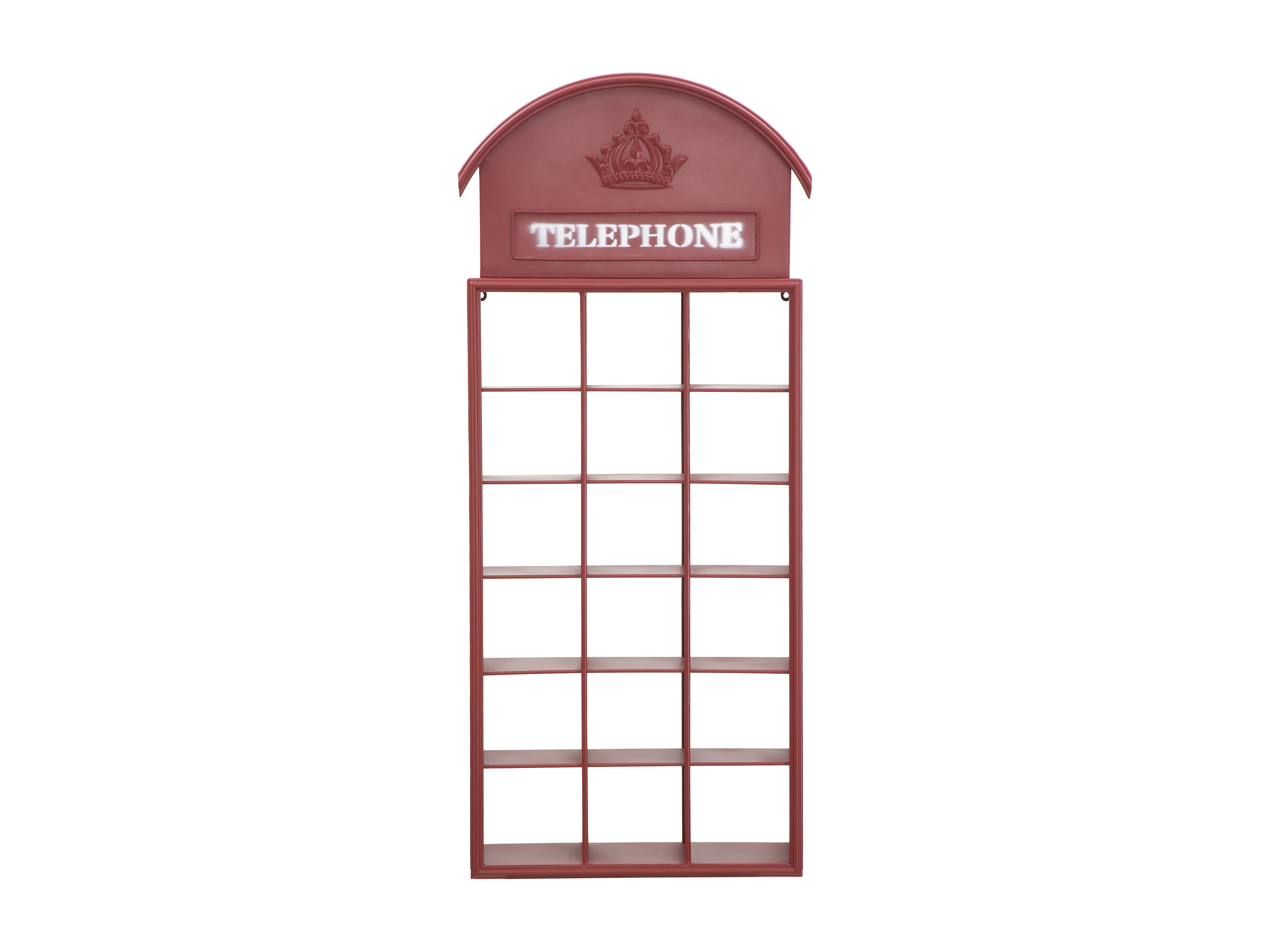 Bacheca in metallo rosso a forma di cabina telefonica cm 52x15x120