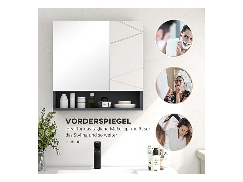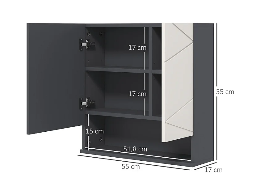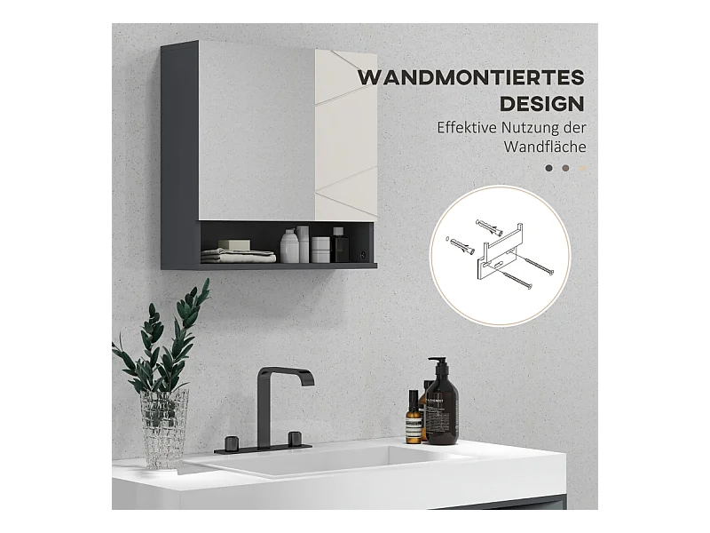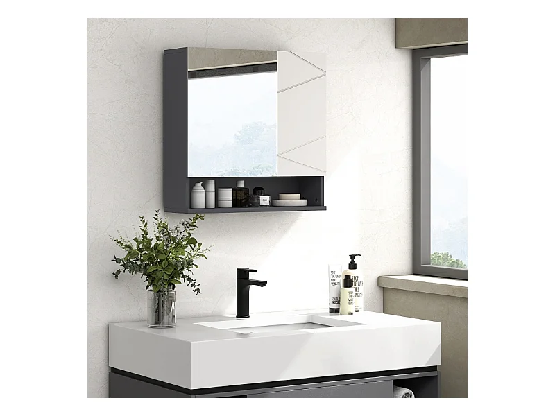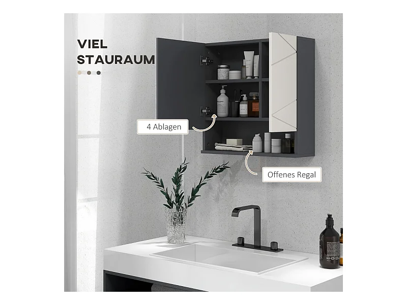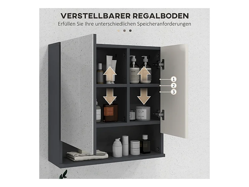 Badezimmerschrank mit Spiegel, 2-türiger Stauraum, verstellbare Regale, Antibeschlagfunktion, für Badezimmer, Wohnzimmer, Grau (55x17x55 cm)