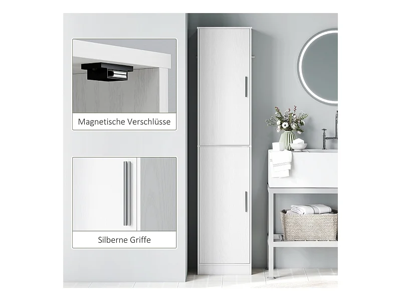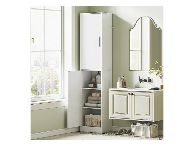 Colonna bagno moderna con 2 armadietti e ripiani regolabili bianco