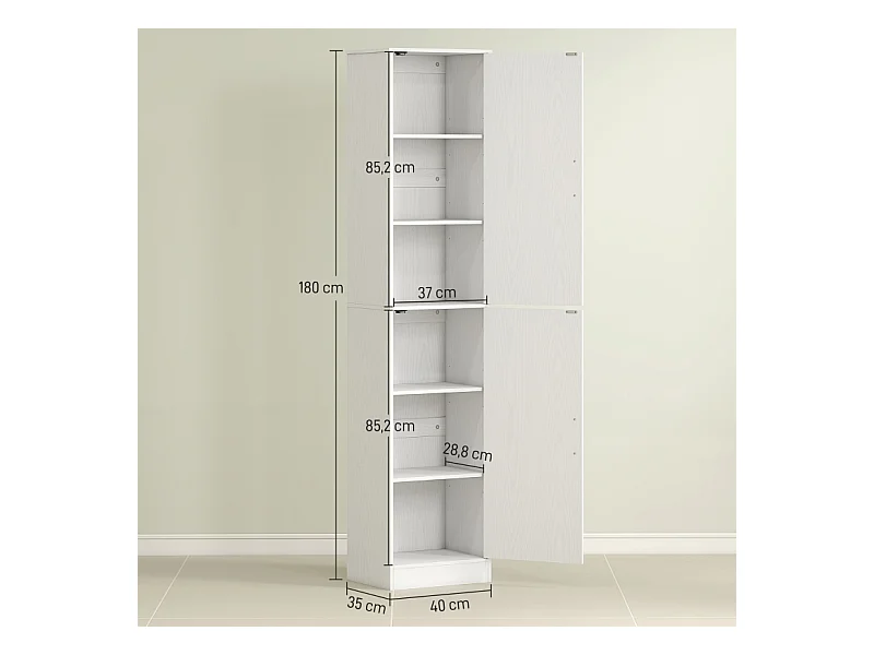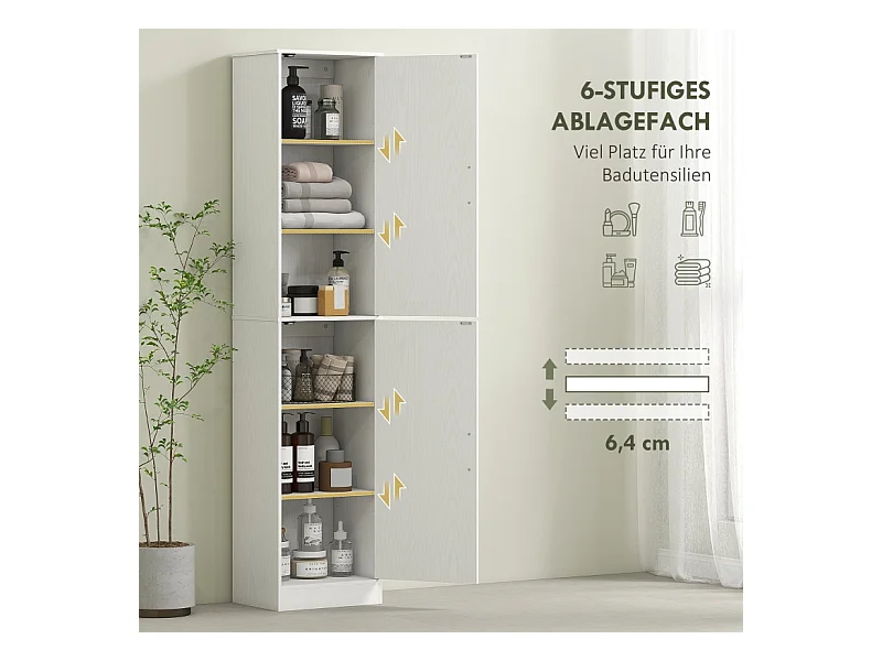 Mobile colonna bagno a 2 armadietti con 6 ripiani regolabili bianco