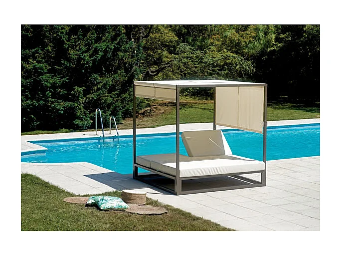 Baldacchino matrimoniale MOIA in alluminio tortora con cuscino in PVC-leather