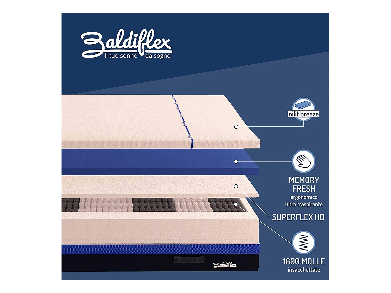 Materasso 1600 Molle e Memory 5 cm Hybrid Bros Matrimoniale misura 160x190 cm