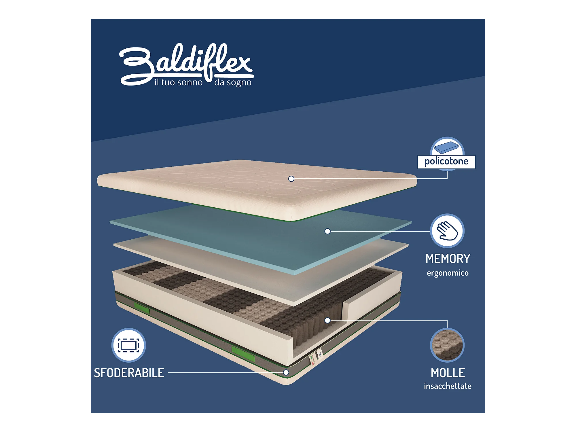 Materasso 800 Molle e Memory 5 cm Green Spring Plus, misura 170x190 cm
