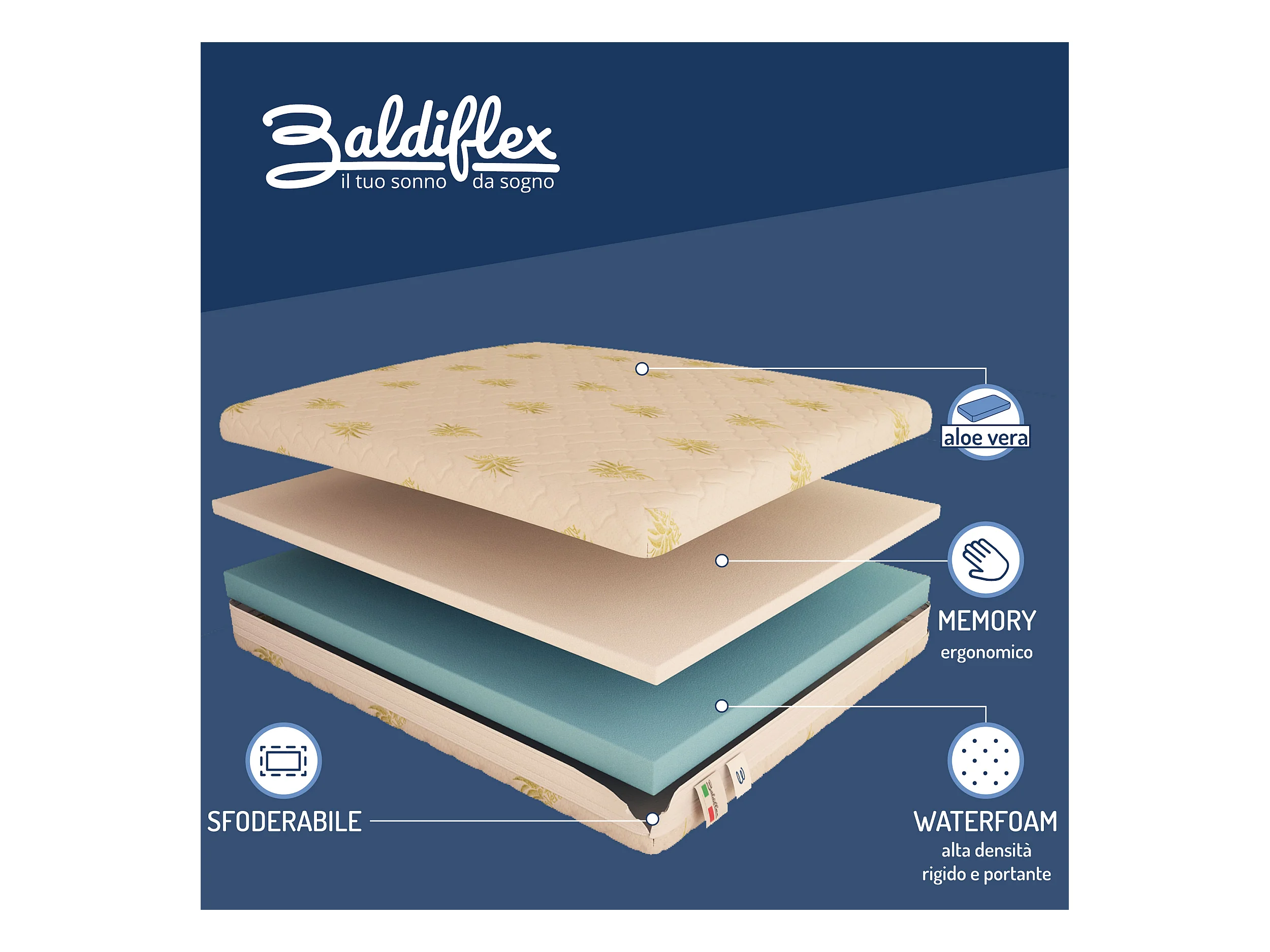 Materasso Memory Foam 15+5 cm Sfoderabile Aloe Vera Singolo misura 80x190 cm
