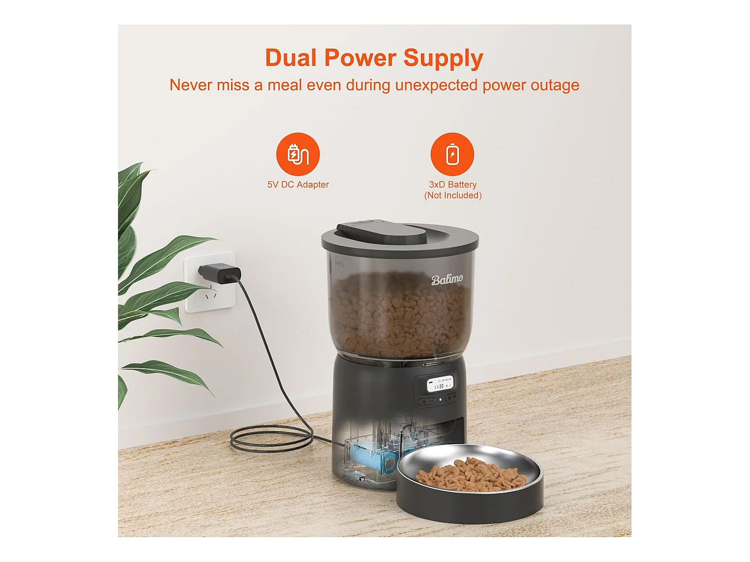 Balimo Dick 3L Distributore crocchette Gatto Automatico,Timer Programmabile/FunzioneRegistrazione,con ciotola inossidabile,fino 6 pasti/giorno (nero)