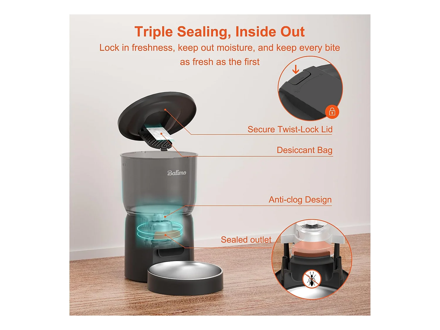 Distributore LCD Crocchette 4L Balimo Gatti/Cani Distributore Automatico di Cibo Programmabile 4 Pasti/GiocoR Registratore 10s Vocale, Nero Bianco