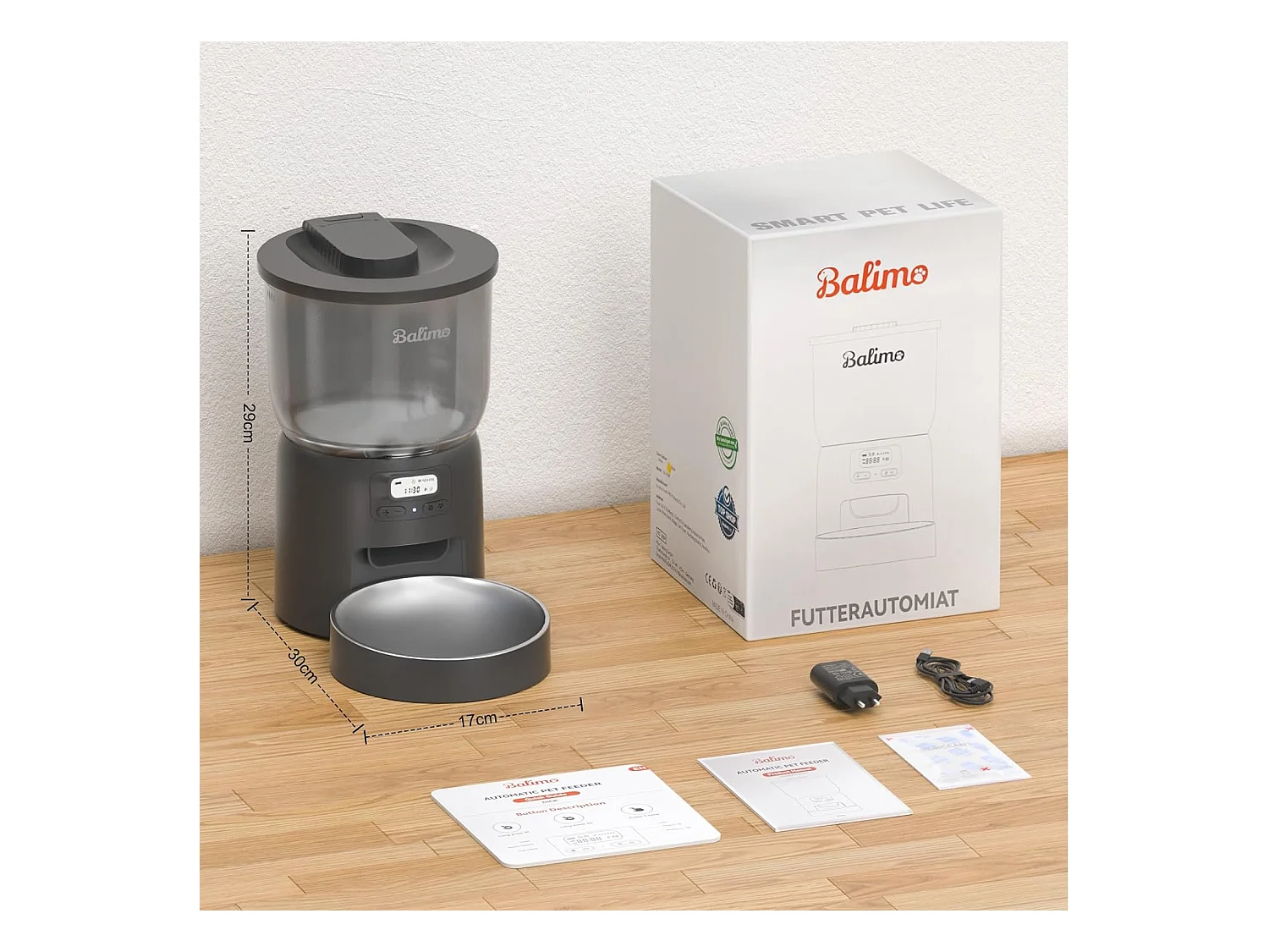 WIFI Distributore di crocchette Balimo 4L per gatti/cani Telecomando Telefono cellulare LCD, Adattatore Secteu / Batteria, Funzione di registrazione