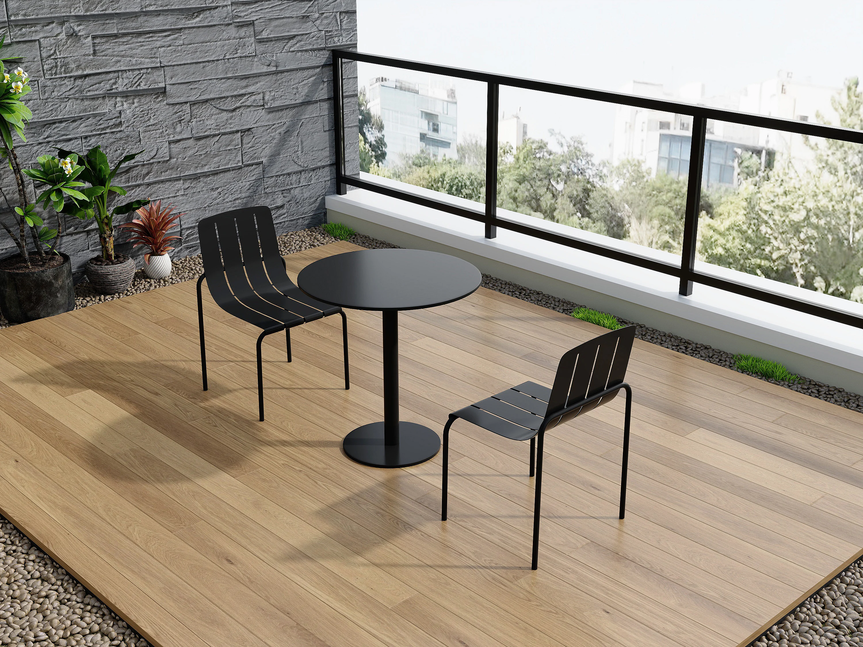 Sala da pranzo da giardino in metallo: un tavolo D.60 cm e 2 sedie impilabili - Nero - BALVORA di MYLIA