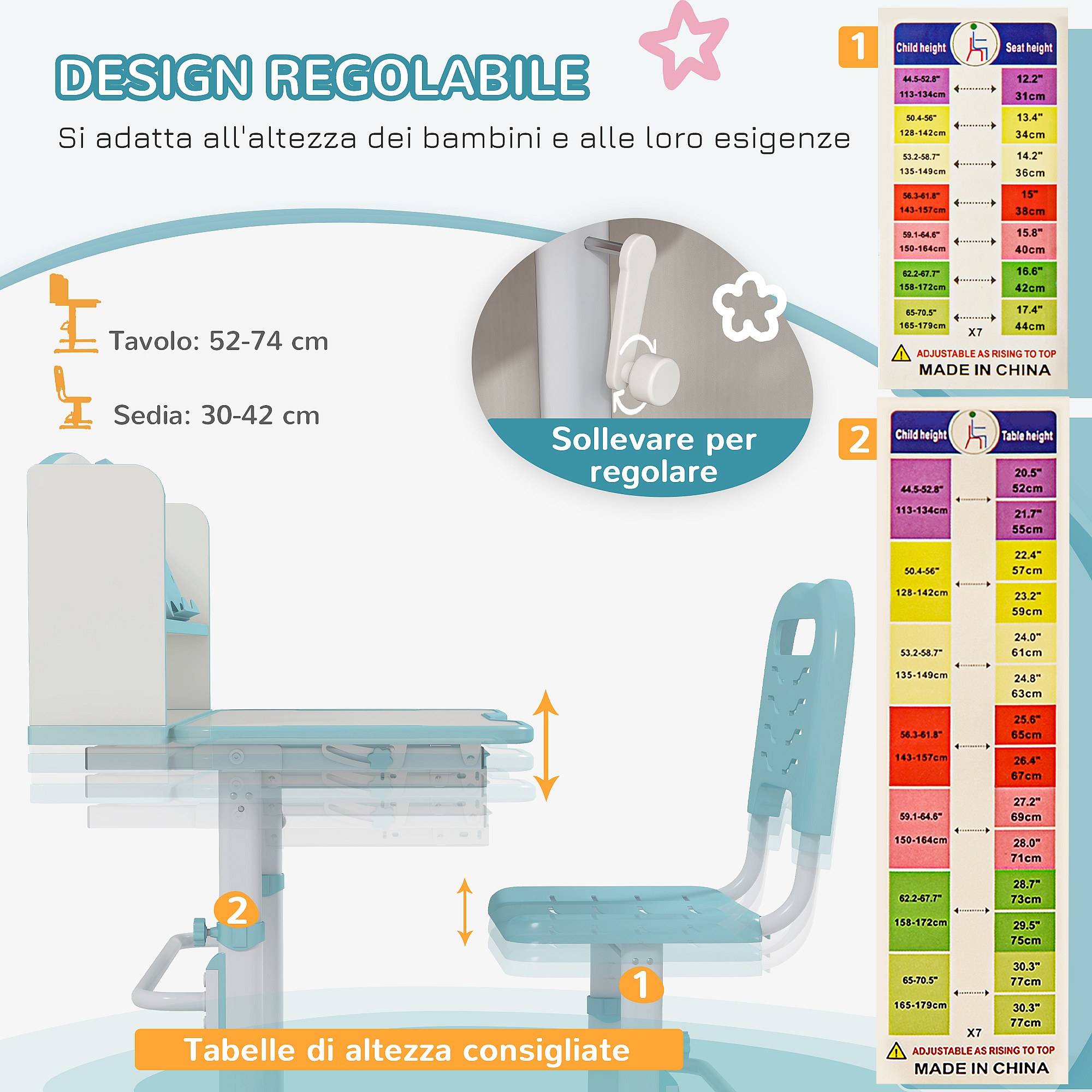 Banco per bambini 6-12 anni con sedia regolabile blu