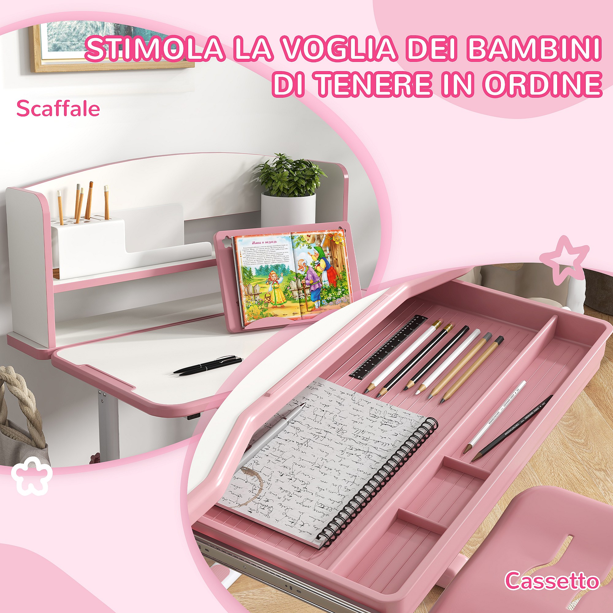 Banco per bambini 6-12 anni con sedia regolabile rosa