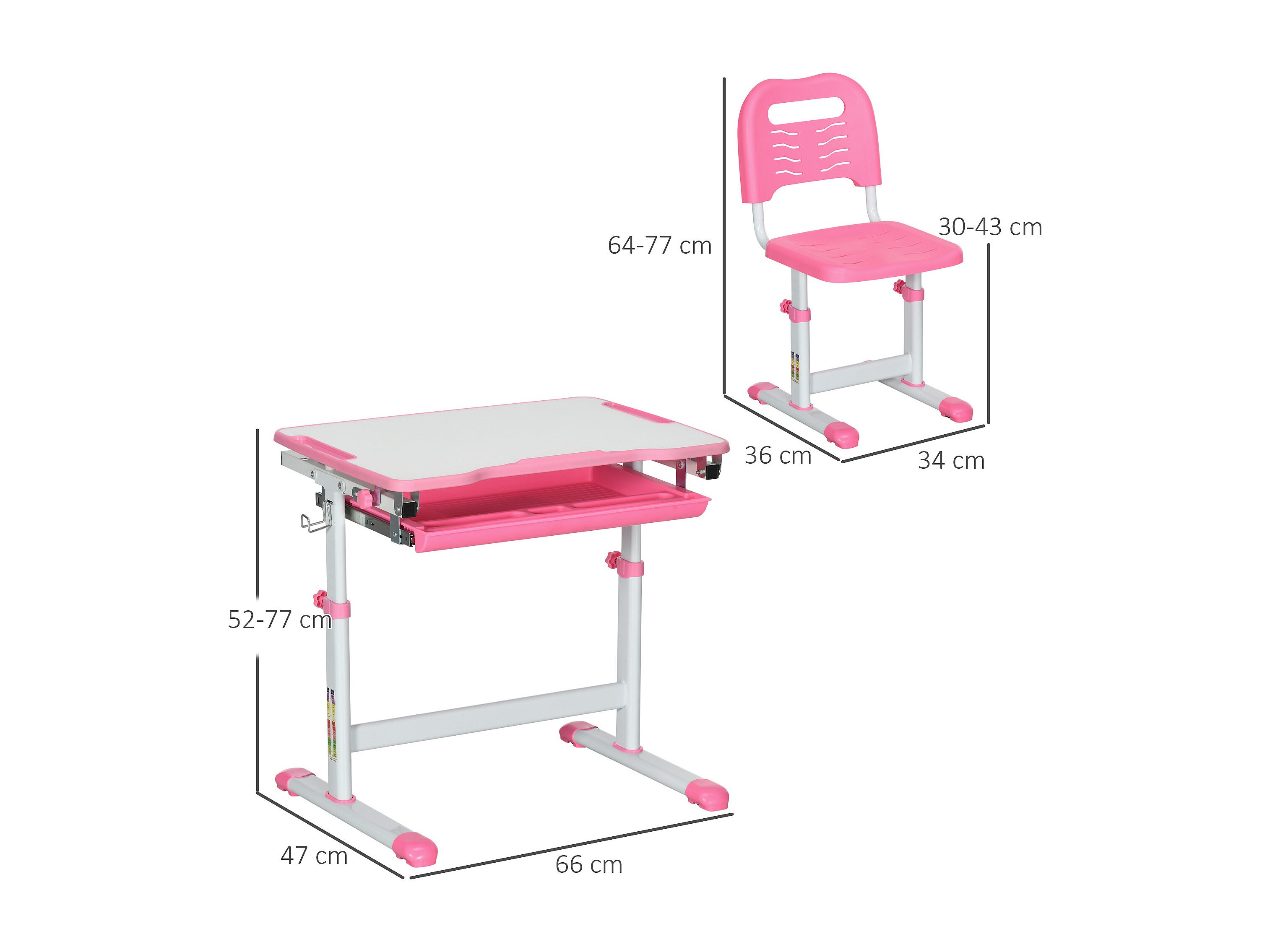 Banco scuola con sedia ad altezza regolabile e piano inclinabile rosa