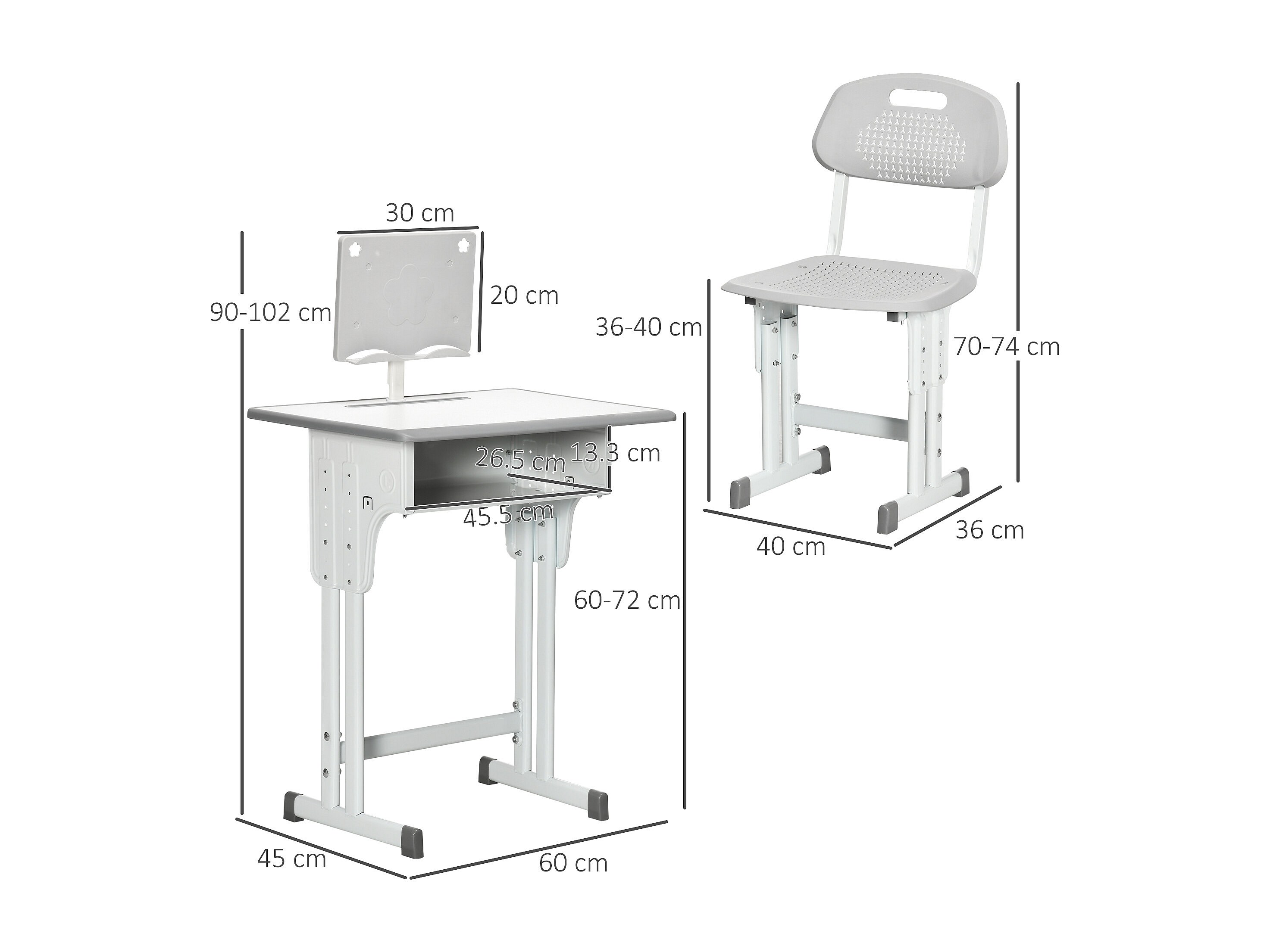 Banco scuola con sedia regolabile età 6-12 anni grigio