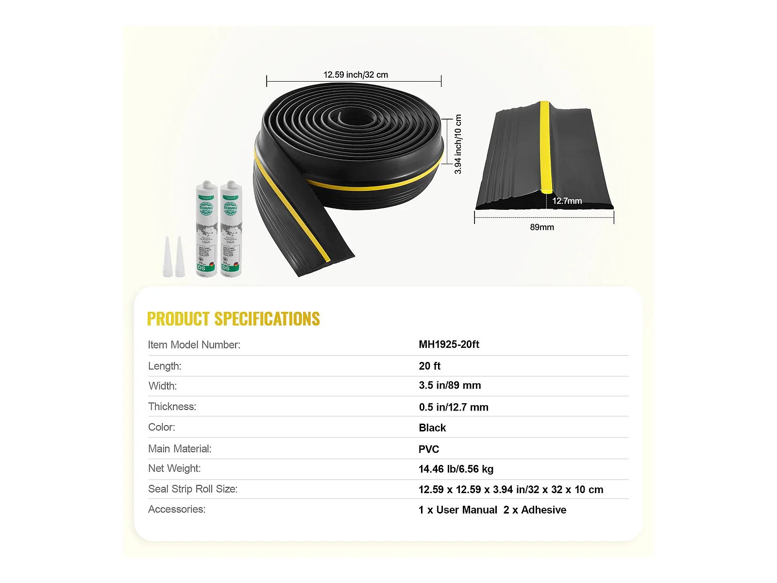 Banda di Tenuta SucceBuy per Soglia di Porta del Box 610cm in PVC Impermeabile all'Acqua, Banda Resistente alle Intemperie per il Fondo della Porta del Box
