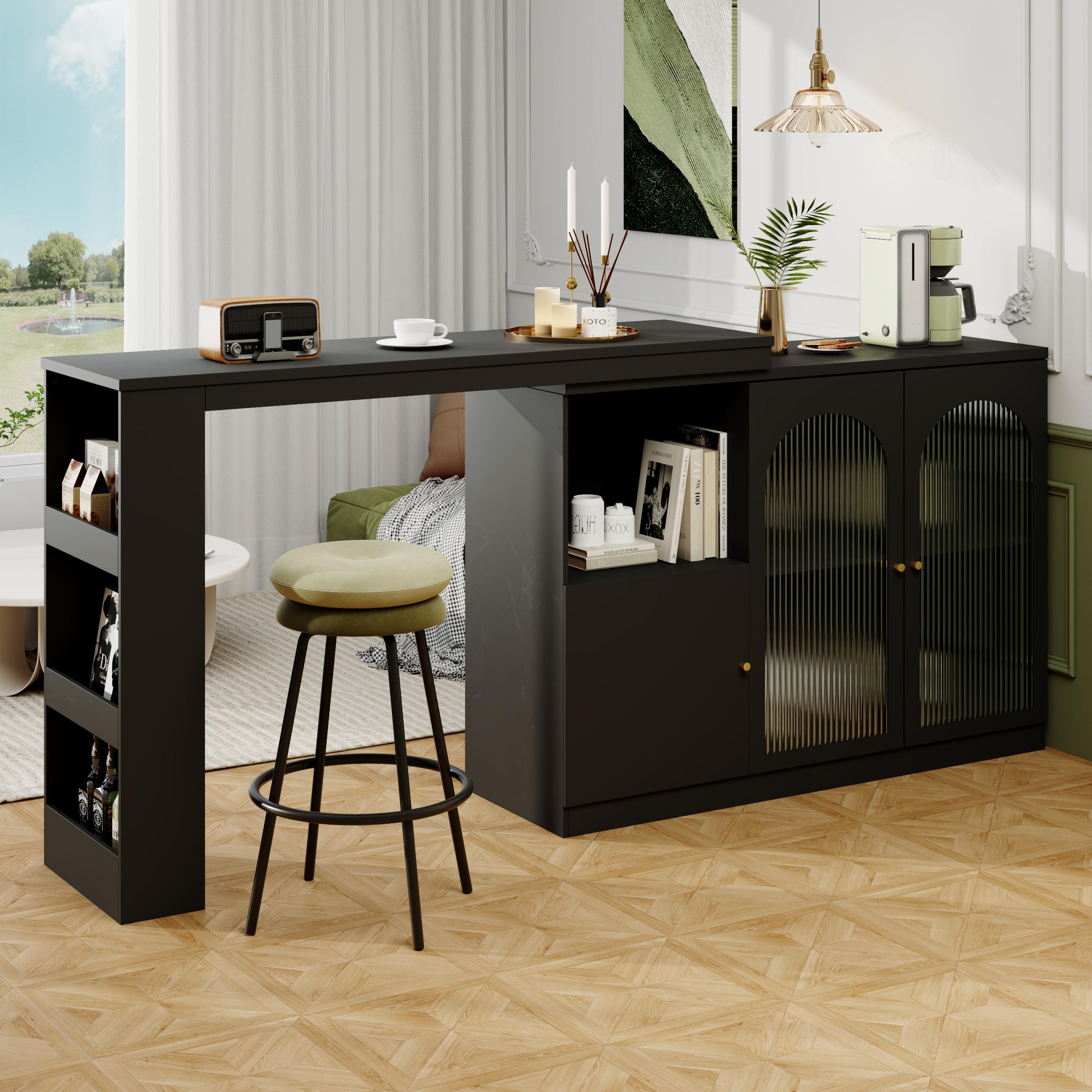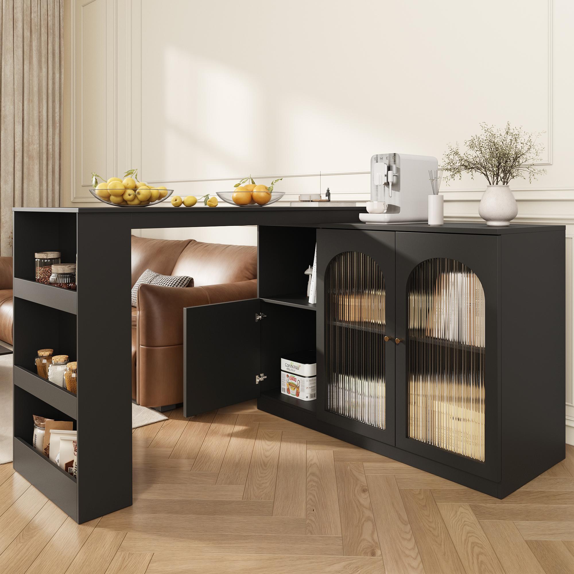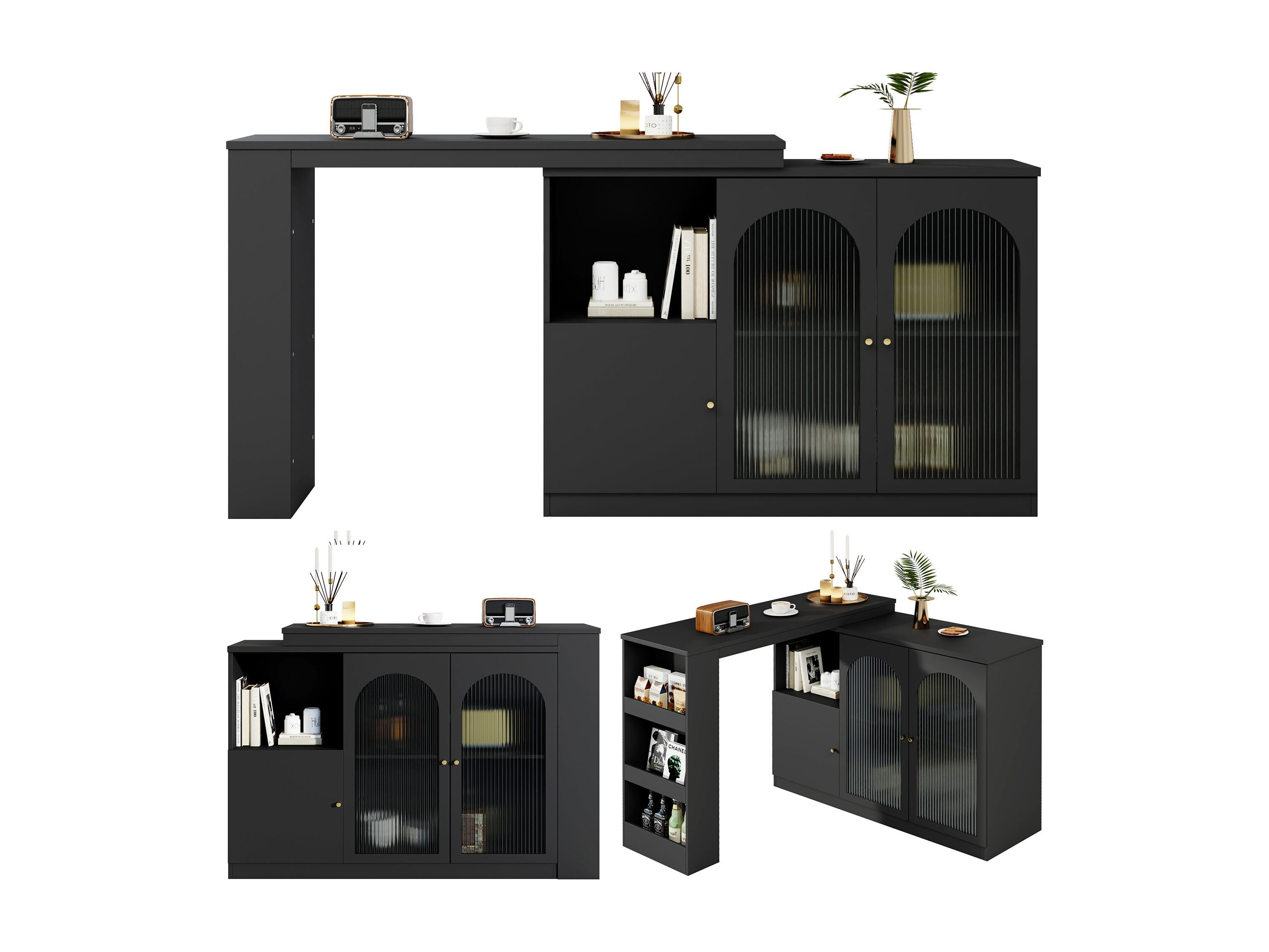 Bar girevole MDF nero con rangement e porte vetrate per cucina e salone 120 cm