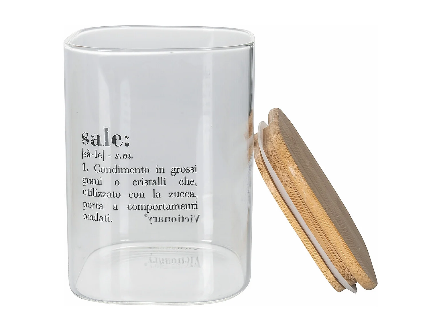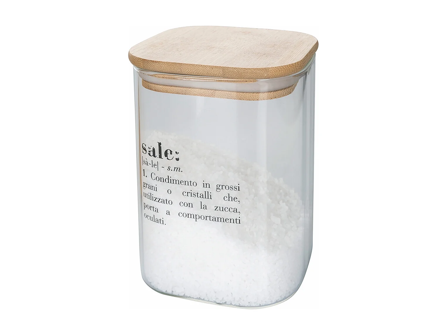 Barattolo in vetro per sale con coperchio bambù 10x10x14 Victionary