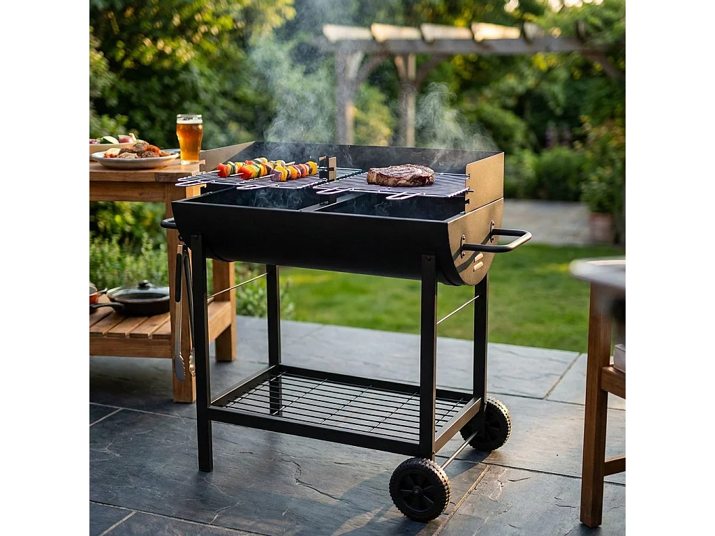 MilaniHome.it - Barbecue a carbonella con ruote da campeggio grigliata di design americanodi coloreNero