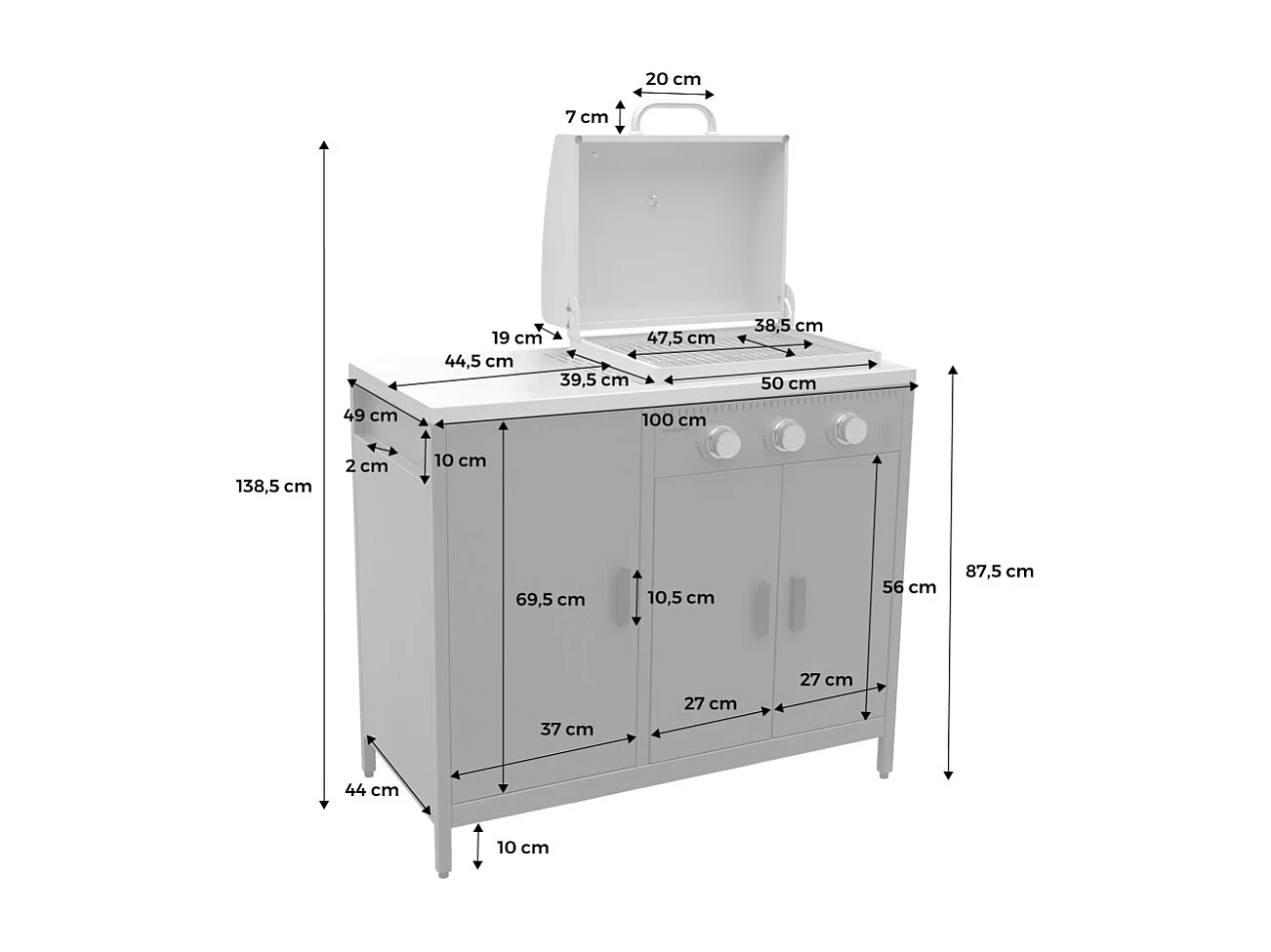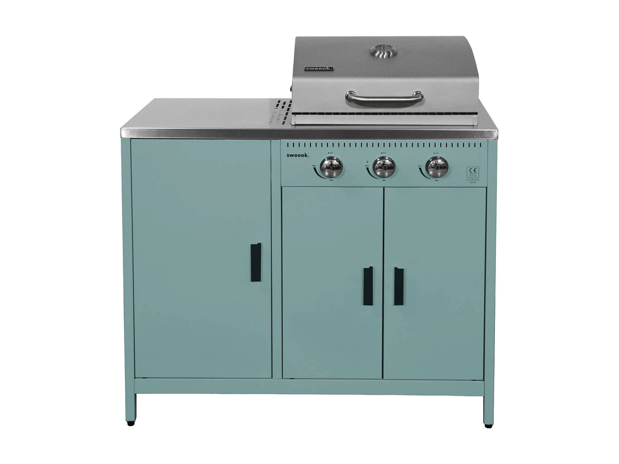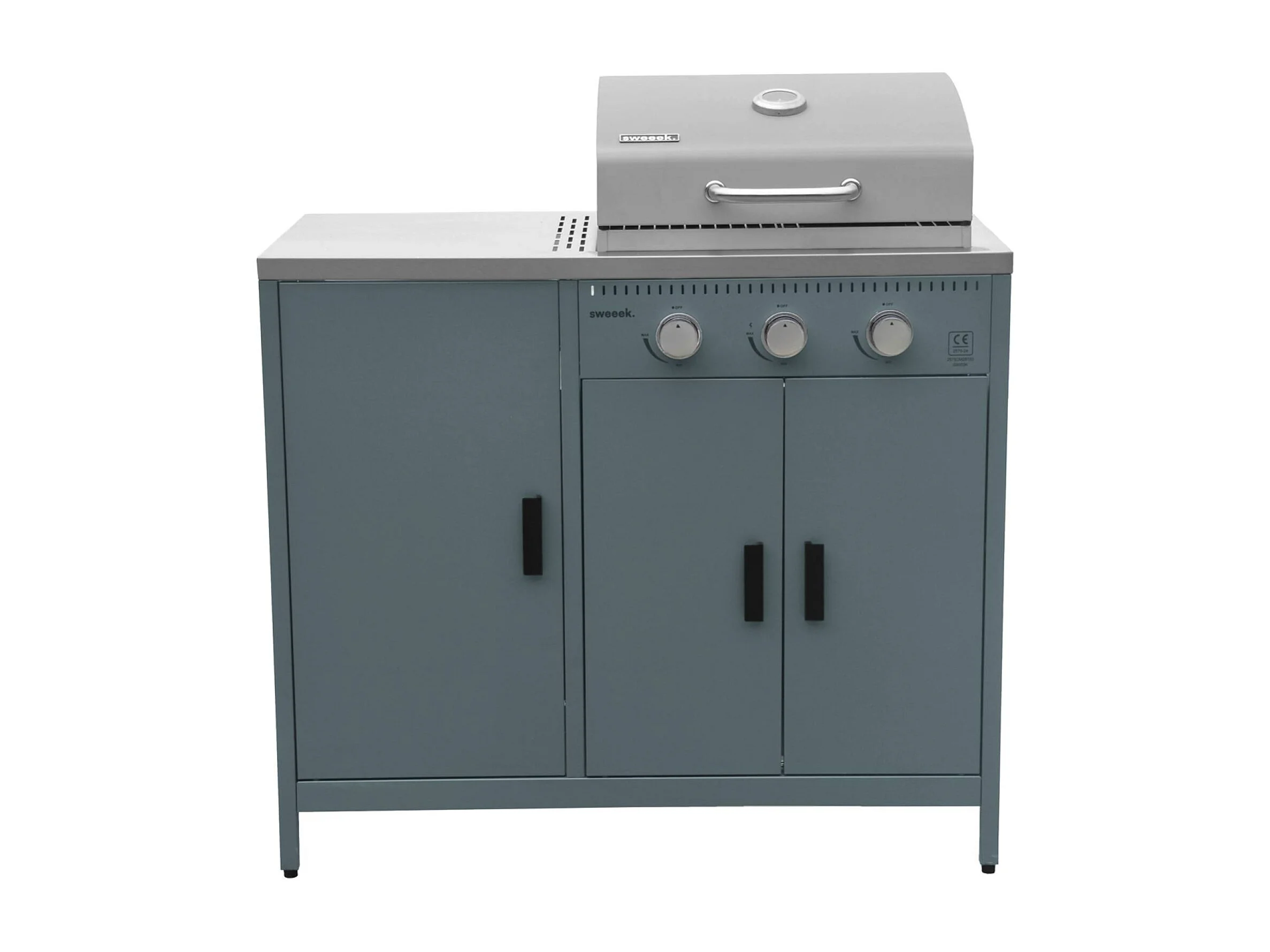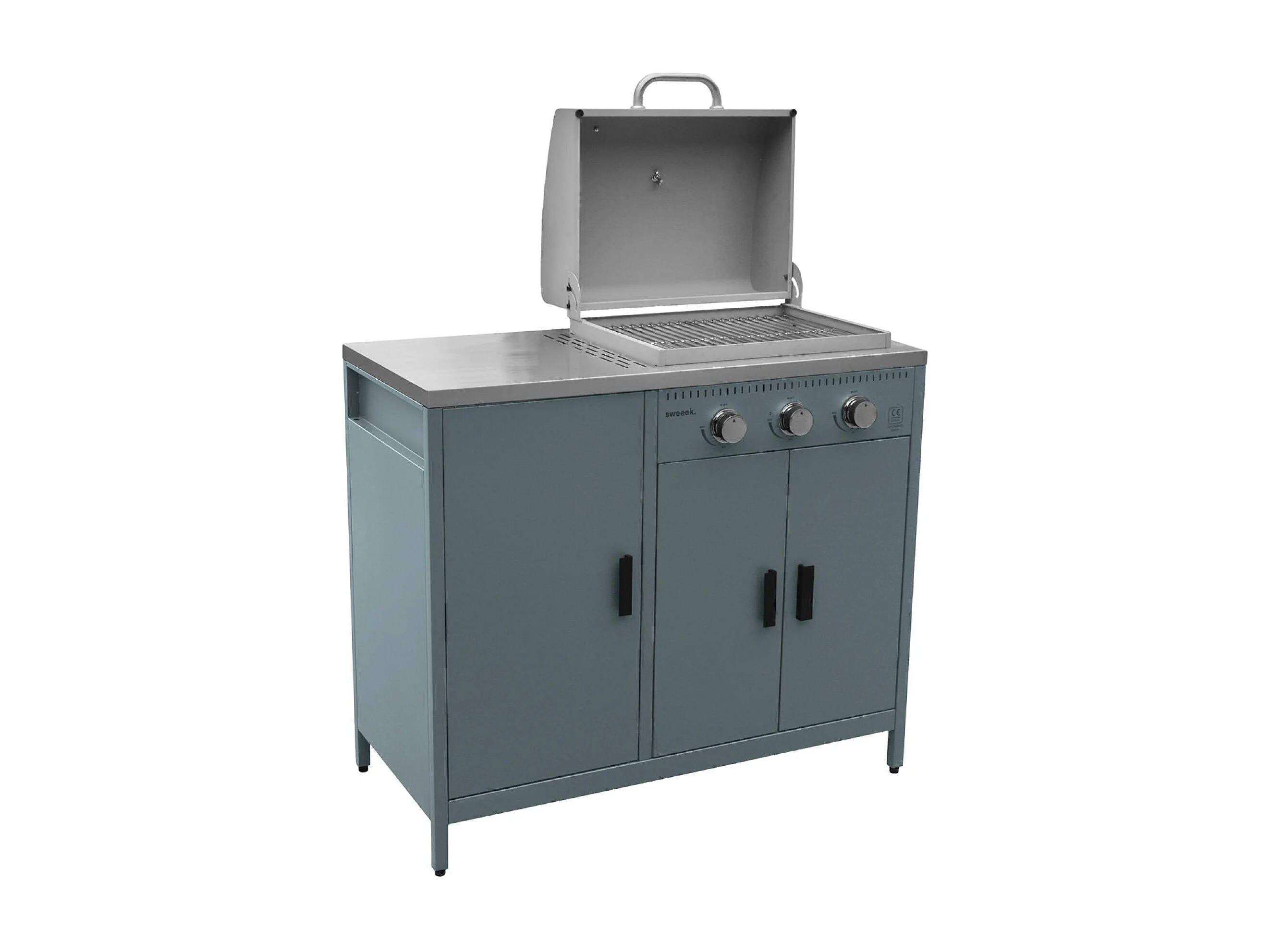 Barbecue a gas 3 bruciatori, 3 ante, 2 spazi di stoccaggio, blu grigio