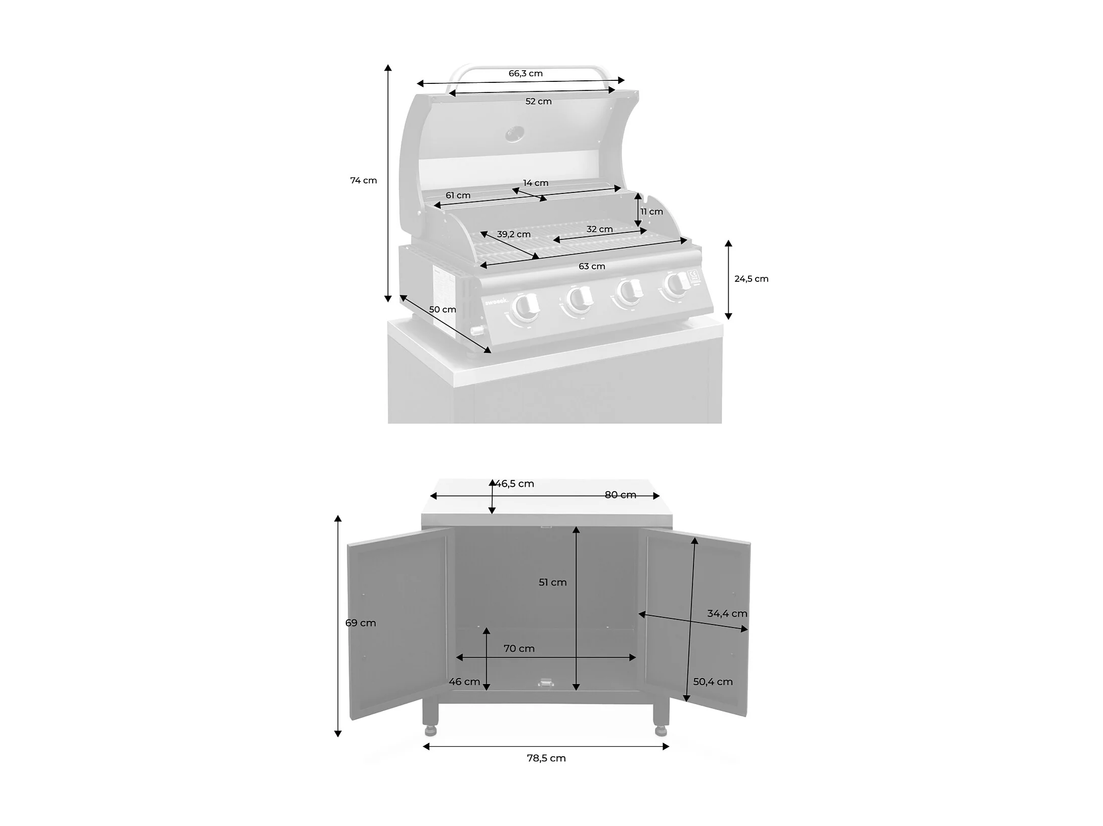 Barbecue a gas 4 bruciatori + mobile in acciaio l80cm