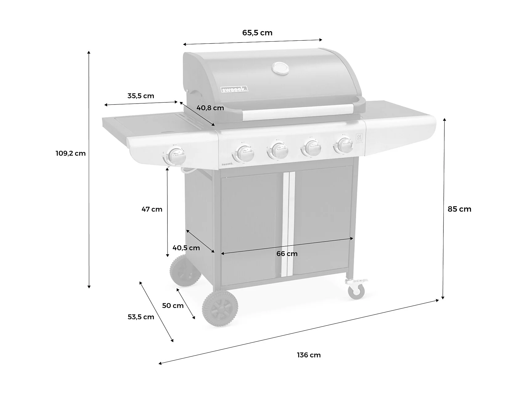 Barbecue a gas a 5 fuochi con 1 bruciatore laterale, nero
