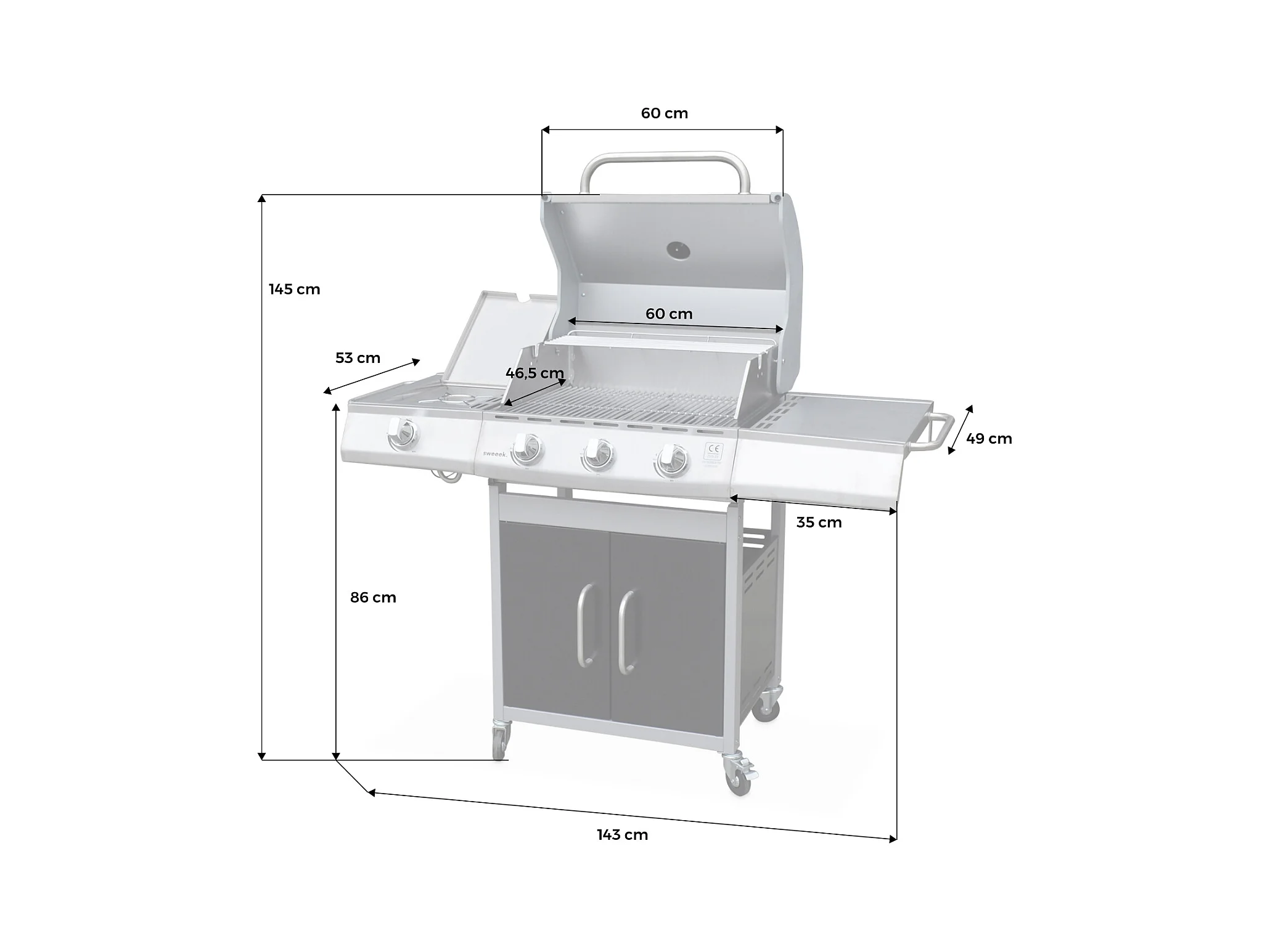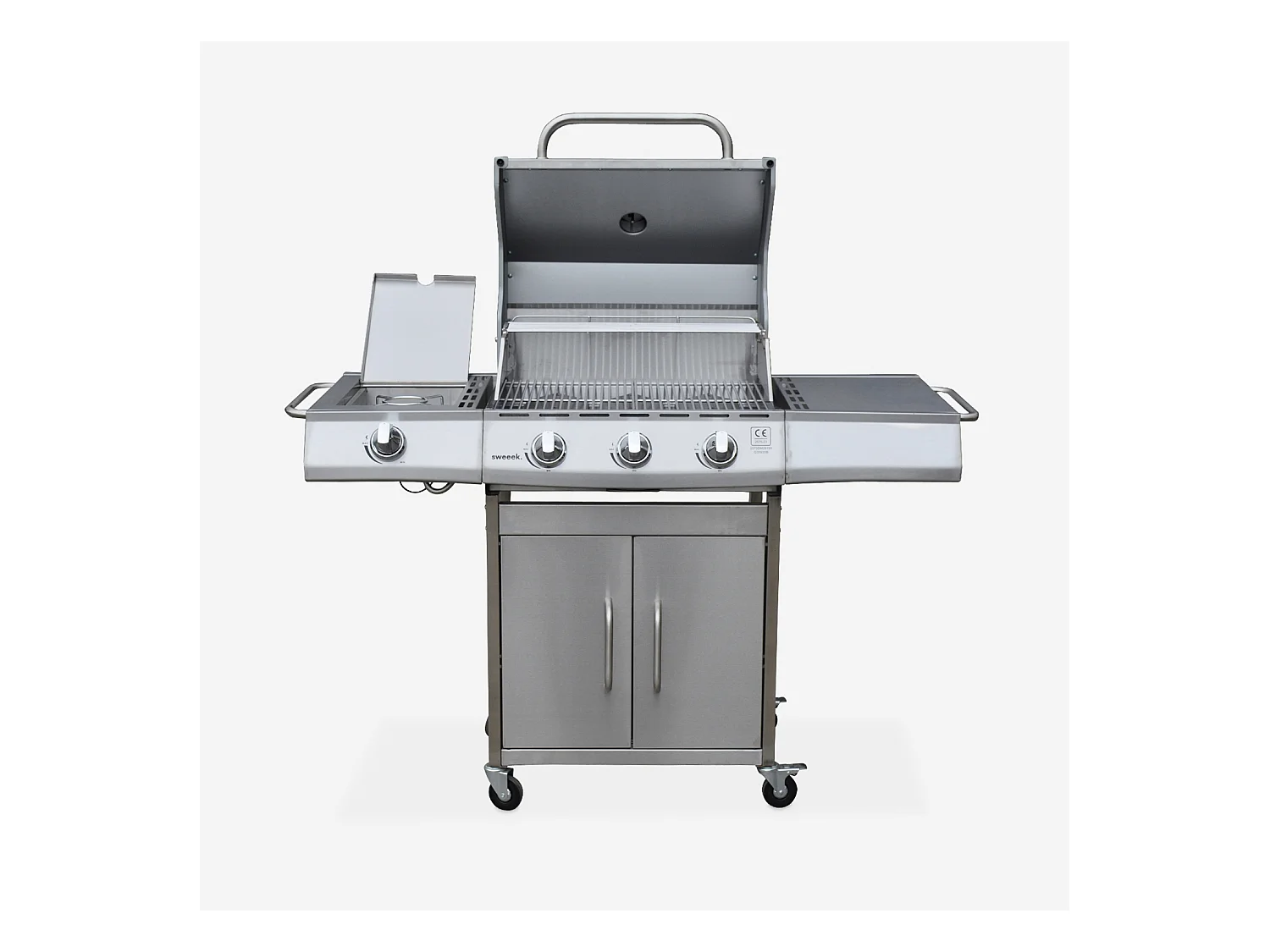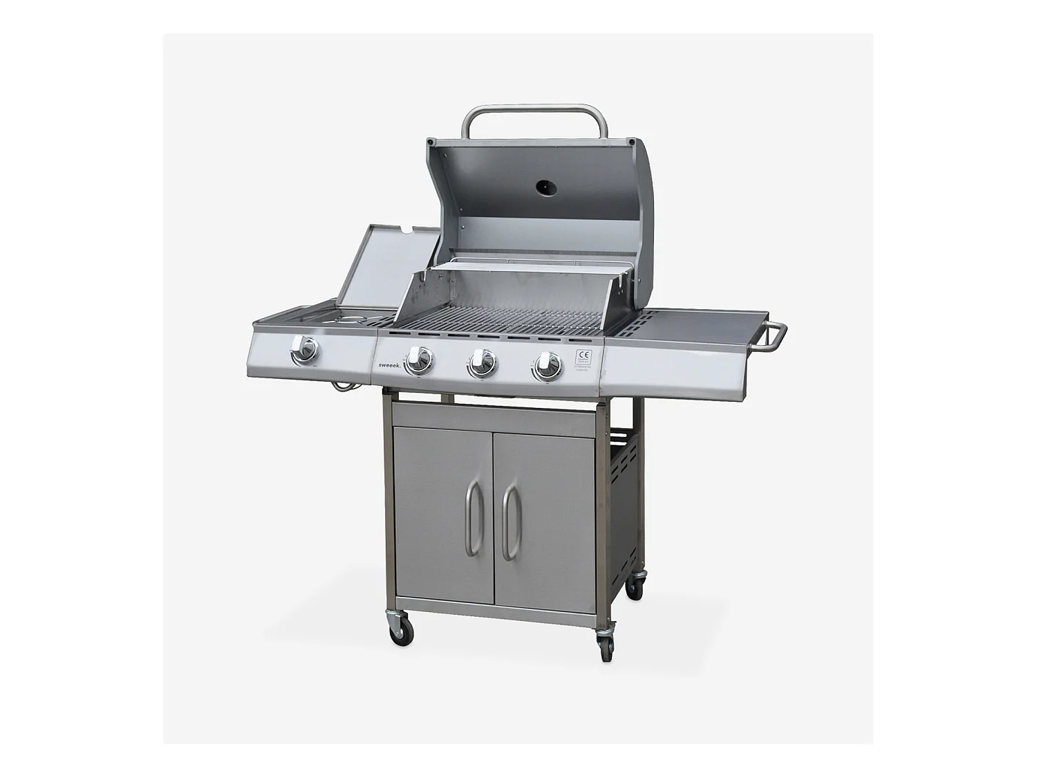 Barbecue a gas con 4 bruciatori di cui 1 laterale, inox
