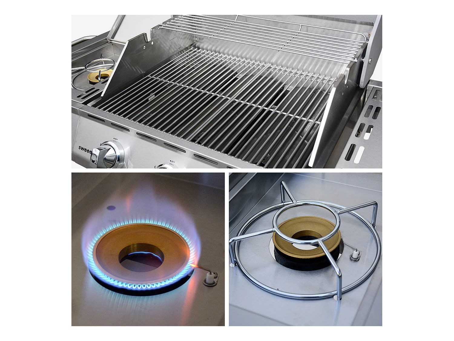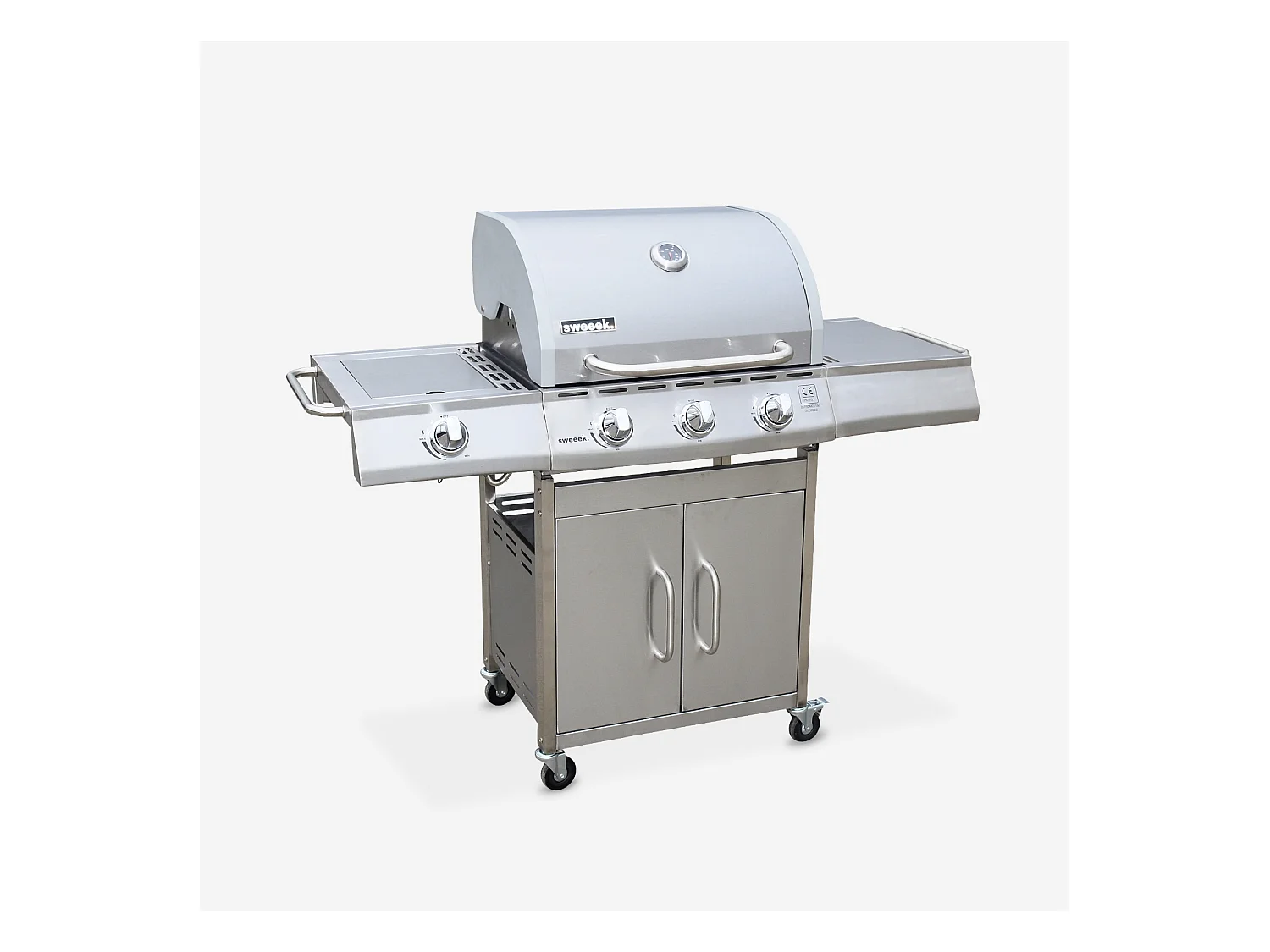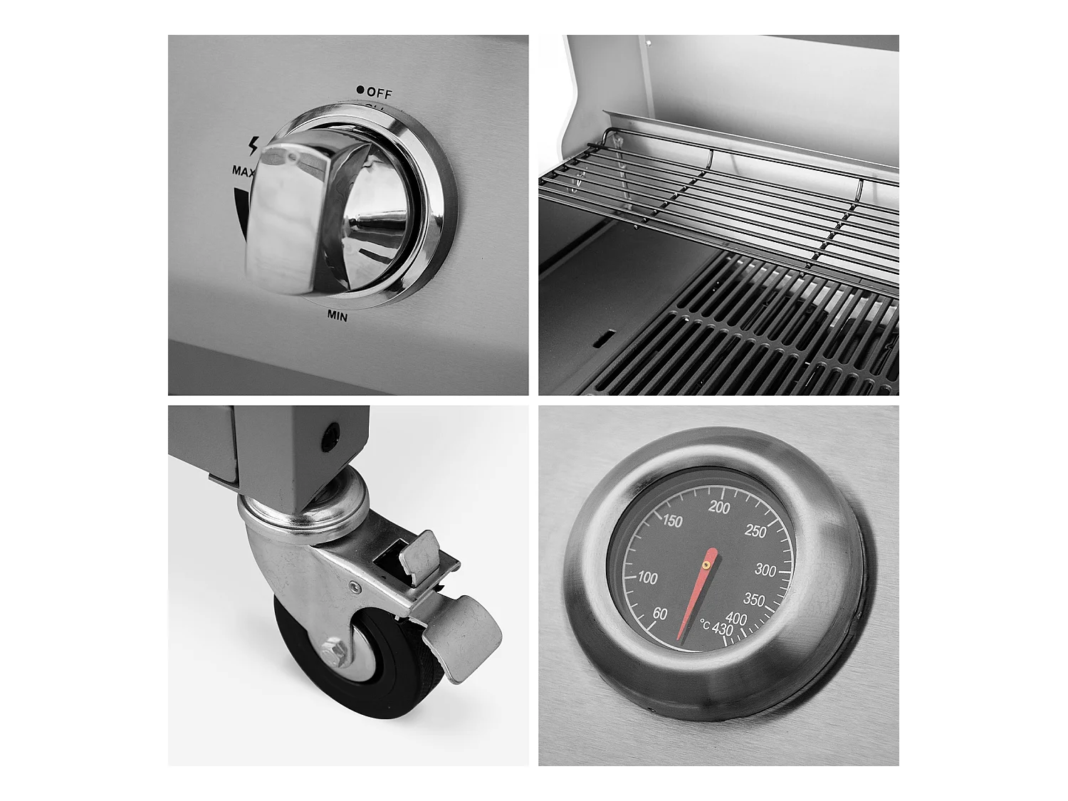 Barbecue a gas con 4 bruciatori di cui 1 laterale, inox