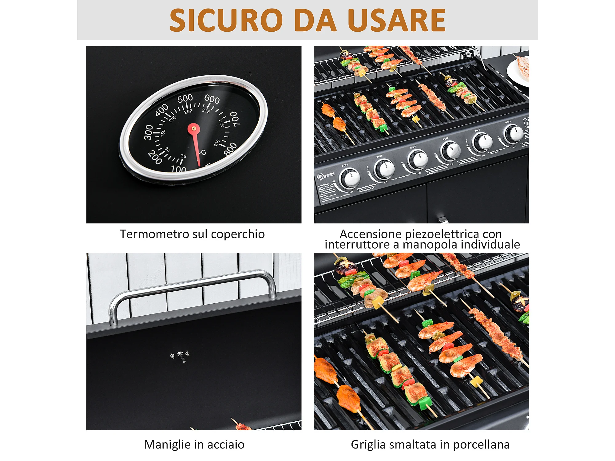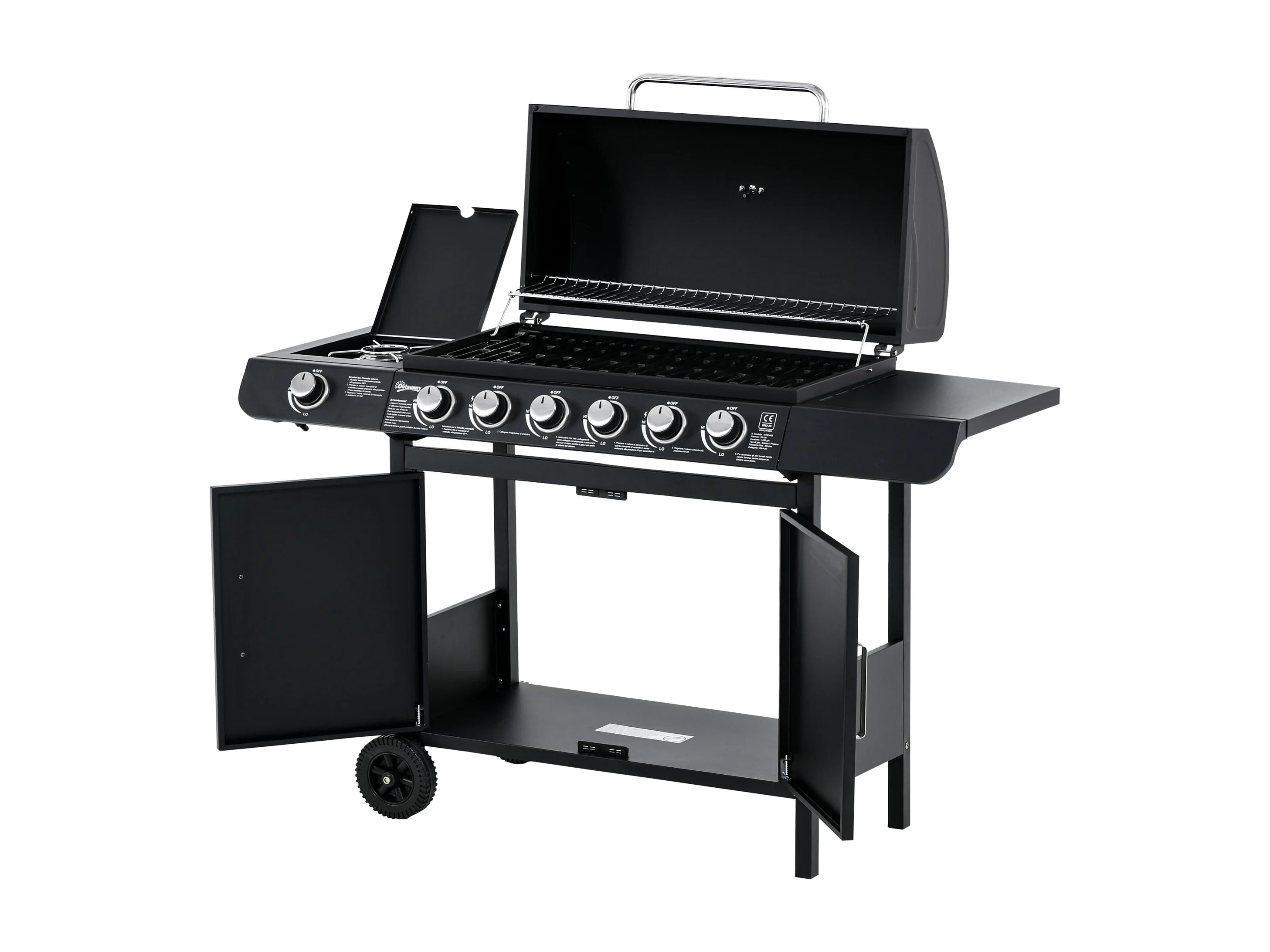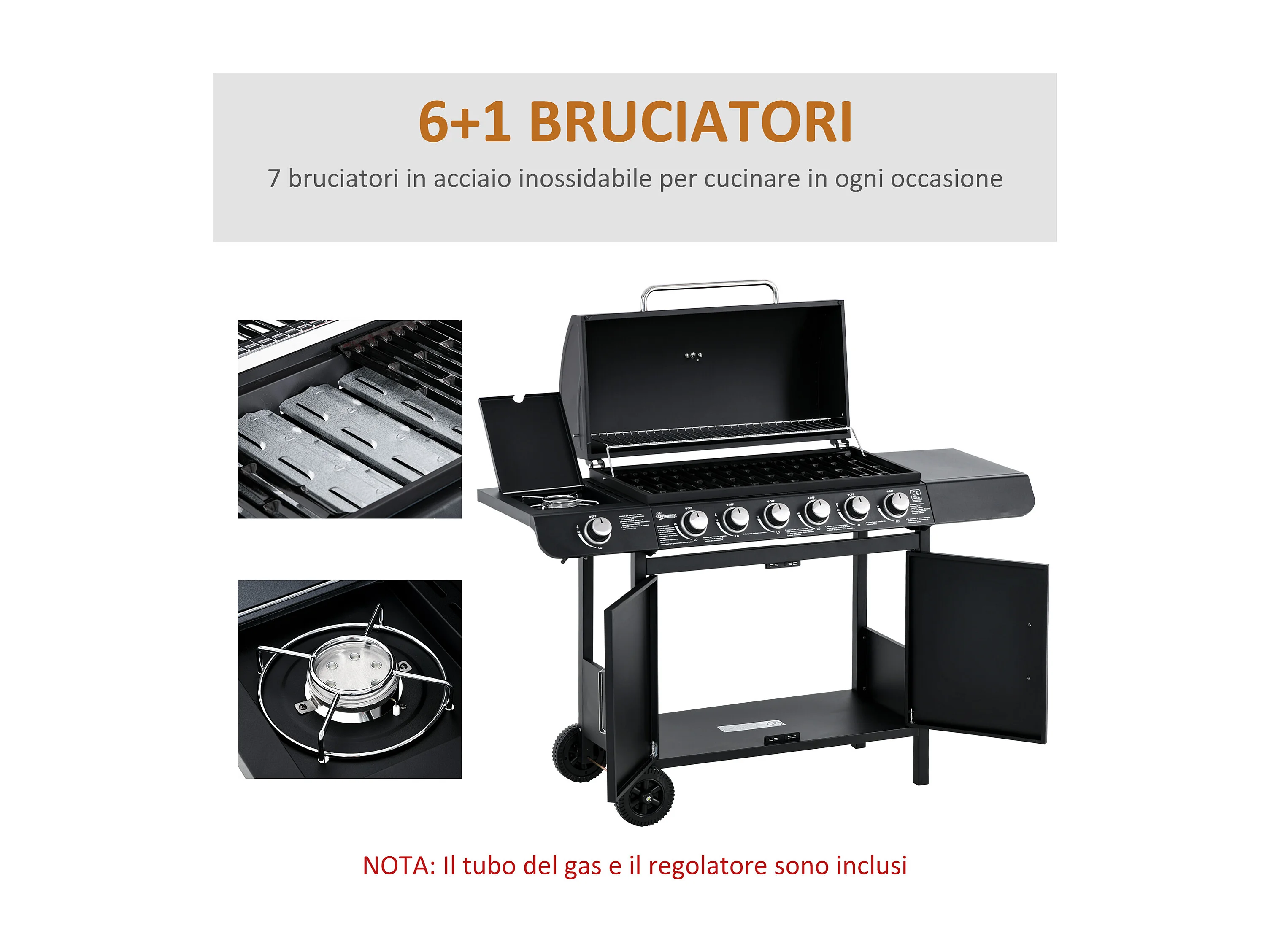 Barbecue a gas con coperchio e fornello laterale a 2 ruote