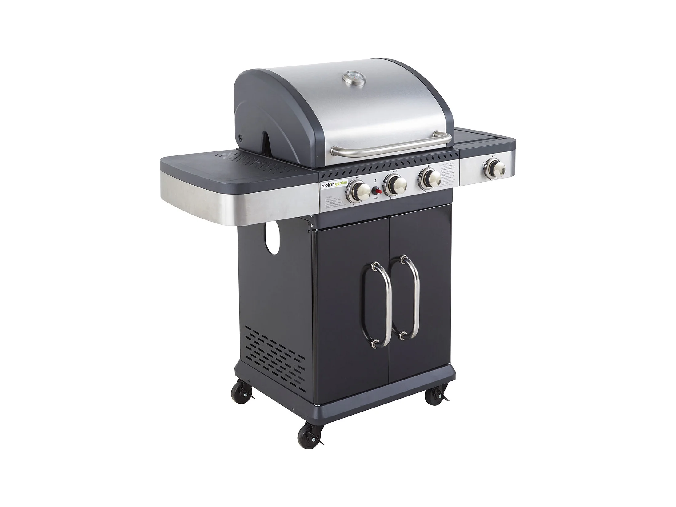 Barbecue a gas FIDGI 3 con termometro - 3 bruciatori + fornello da 11,5kW - COOK'IN GARDEN
