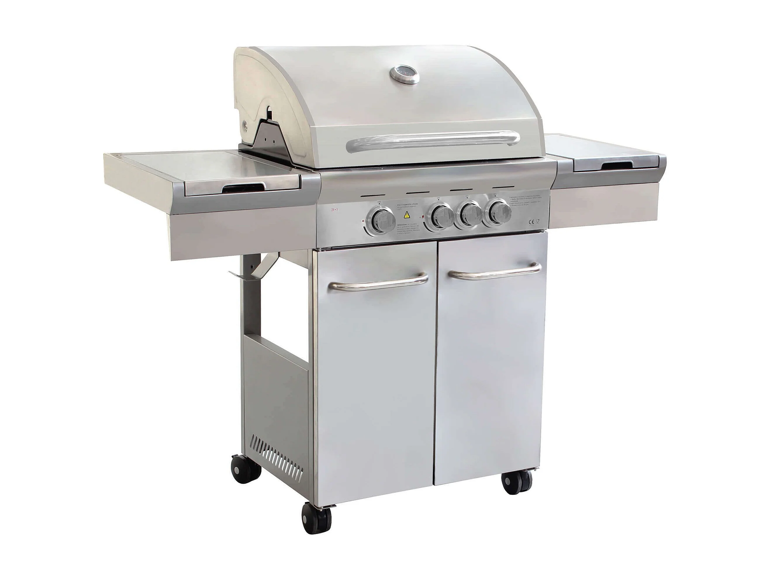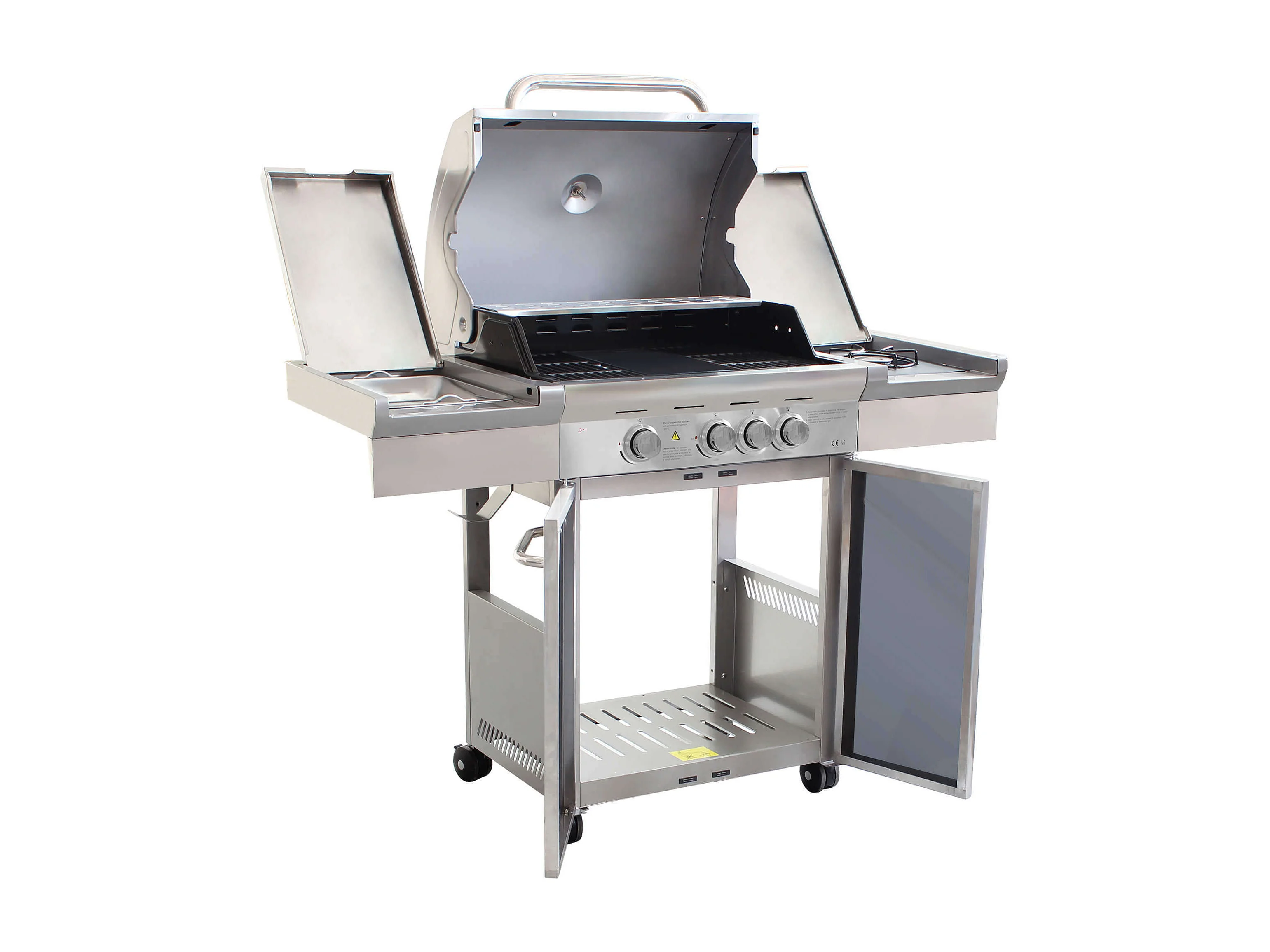 MilaniHome.it - Barbecue A Gas In Acciaio Inox 3 Fuochi + 1 Laterale, Con Piastra E Griglia In Ghisa Per Esterno Giardino Portico Terrazzodi coloreGrigio